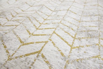 Dywan Jacobs Ladder Central Yellow marki Louis De Poortere to elegancki model o wzorze jodełki, który łączy nowoczesny design z ekologiczną produkcją. Wykonany w pełni z poliestru przy użyciu techniki tkania na płasko, dywan ten charakteryzuje się niskim runem, co sprawia, że jest odporny na odkształcenia pod wpływem ciężaru mebli i łatwy w codziennym użytkowaniu. Dywan ten jest odporny na zabrudzenia i łatwy do czyszczenia – krótki włos zapobiega gromadzeniu się kurzu, a plamy można łatwo usunąć łagodnym środkiem czyszczącym. Co więcej, jeśli wymiary dywanu na to pozwalają, można go prać w pralce. Dzięki odporności poliestru na blaknięcie, dywan zachowuje żywe kolory przez długi czas, nawet po wielu praniach lub ekspozycji na światło słoneczne. Kauczukowa warstwa na spodzie zapewnia stabilność, zapobiegając przesuwaniu się dywanu, co podnosi komfort i bezpieczeństwo użytkowania.