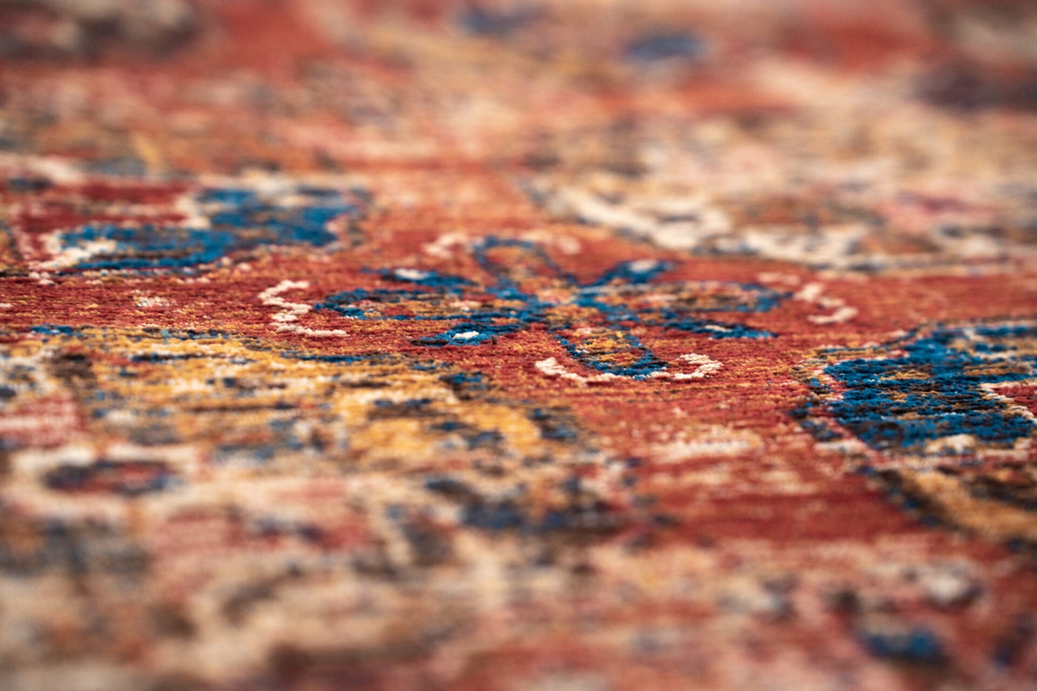 KASAK AKSOUL 9841 to dywan inspirowany tradycyjnym wzornictwem orientalnym. Jego bogata ornamentyka i głębokie kolory, w tym bordo, ochra i granat, tworzą kompozycję przyciągającą wzrok i budującą atmosferę ciepła. Dywan doskonale wpisuje się w styl boho, vintage i klasyczny, uzupełniając wnętrze o nutę egzotyki. Wykonany metodą płaskiego tkania z bawełnianej osnowy i syntetycznych przędz, oferuje trwałość i wygodę użytkowania nawet w intensywnie eksploatowanych pomieszczeniach.