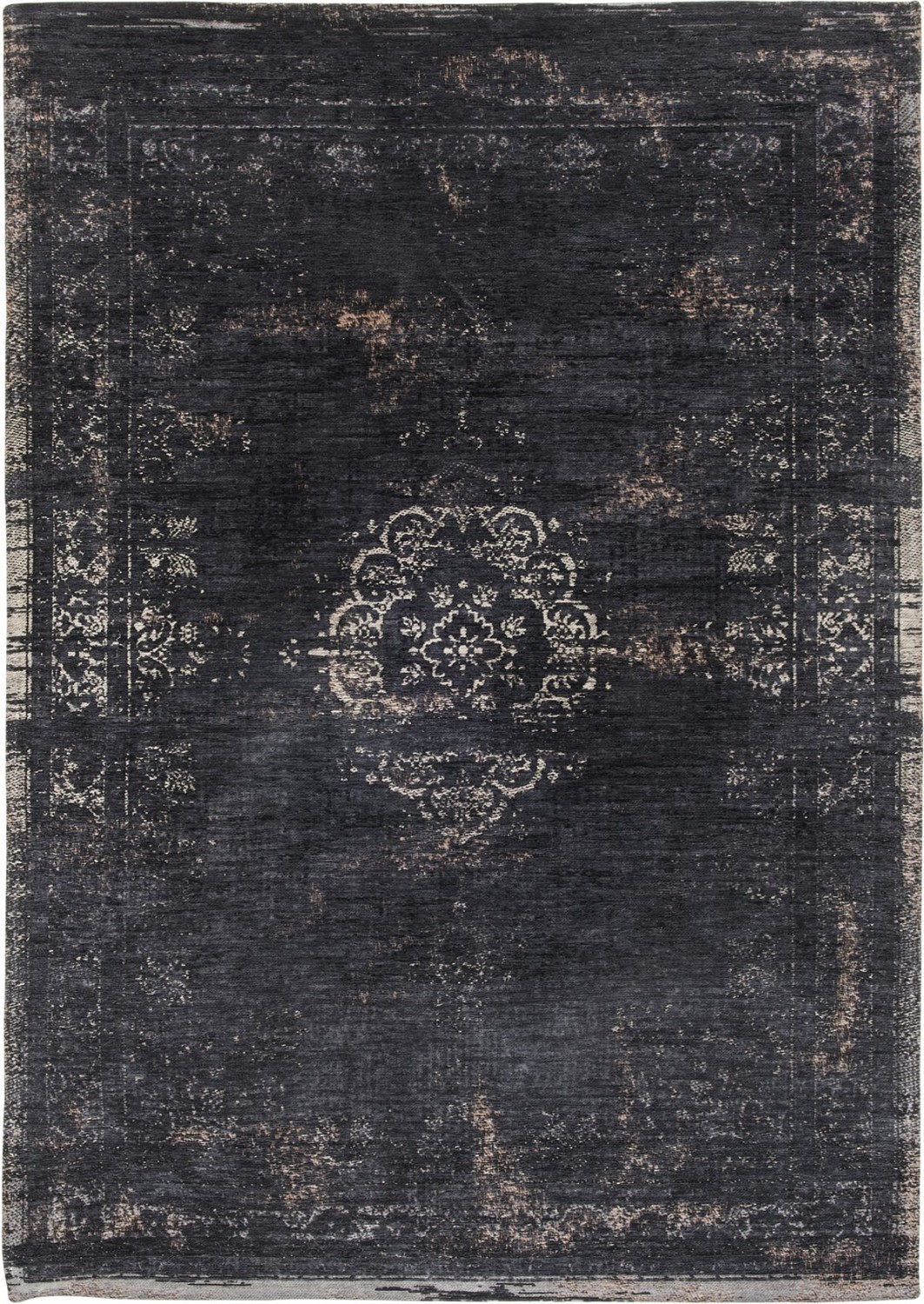 Dywan Medallion Mineral Black z kolekcji Fading World marki Louis De Poortere to dywan o klasycznym, vintage designie, łączący elementy przeszłości i współczesnej ekspresji artystycznej. Wykonany w całości z poliestru techniką płaskiego tkania gęstym szwem żakardowym, zapewnia trwałość i precyzyjne wzory. Dywan można prać w pralce, a jego kolory są odporne na blaknięcie. Dodatkowo, dywan ten nie odkształca się pod ciężarem mebli, a antypoślizgowa podkładka zwiększa jego stabilność i bezpieczeństwo użytkowania.
