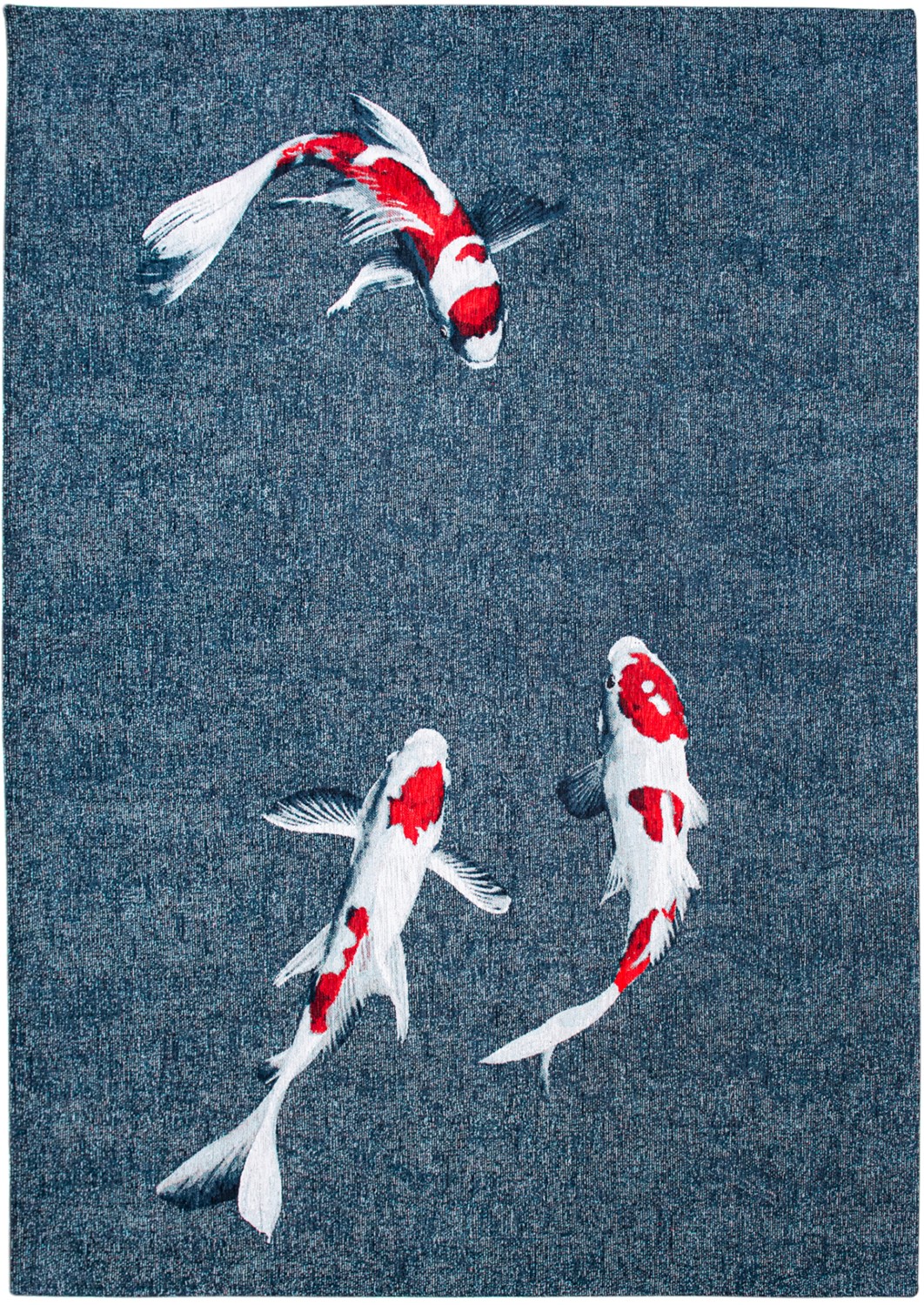 Dywan Pop Koi Japanese Pond od belgijskiej marki Louis De Poortere to wyjątkowy element dekoracyjny, który wprowadza do wnętrza oryginalność i intensywne kolory inspirowane japońskim stawem. Technologia płaskiego tkania gęstym szwem żakardowym pozwala na uzyskanie niezwykle szczegółowego i precyzyjnego wzoru, który przyciąga wzrok i dodaje pomieszczeniom wyjątkowego charakteru. Dywan jest łatwy w utrzymaniu czystości dzięki niskiemu runu, które zapobiega głębokiemu wnikaniu kurzu i brudu, a możliwość prania w pralce dodatkowo ułatwia jego pielęgnację.