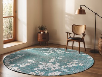 SAKURA LAKE BLUE 9850 to romantyczny model z kolekcji inspirowanej kulturą Japonii. Dekoracyjny motyw kwiatów wiśni został osadzony na tle w odcieniach niebieskiego – od pastelowego błękitu po głęboki lazur. Wersja prostokątna i okrągła pozwala dopasować dywan do różnych przestrzeni. Idealny do sypialni, salonu, a nawet pokoju dziecka – wnosi spokój, świeżość i subtelną elegancję.