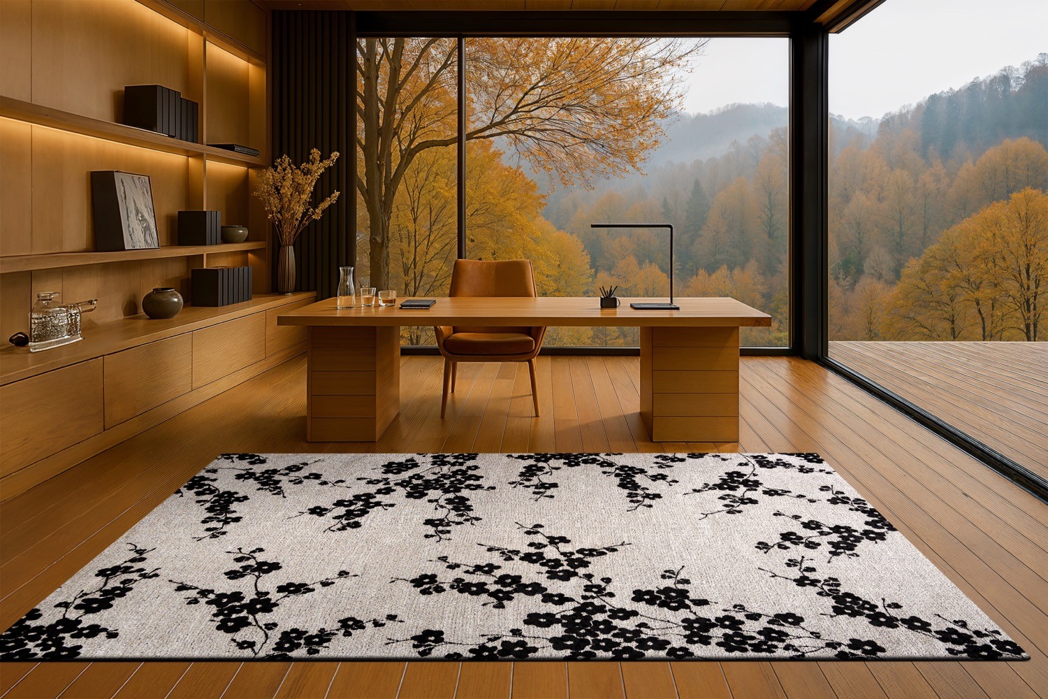 Model SAKURA NIGHT SNOW 9835 łączy kontrastujące barwy: czystą biel i głęboki grafit, tworząc minimalistyczną, a zarazem poetycką kompozycję. Wzór kwiatów wiśni subtelnie zarysowuje się na tle niczym oszronione gałązki w zimowy poranek. Idealny do nowoczesnych wnętrz o oszczędnej formie – sypialni, salonu czy przestrzeni medytacyjnej. Dostępny w wersji prostokątnej i okrągłej.