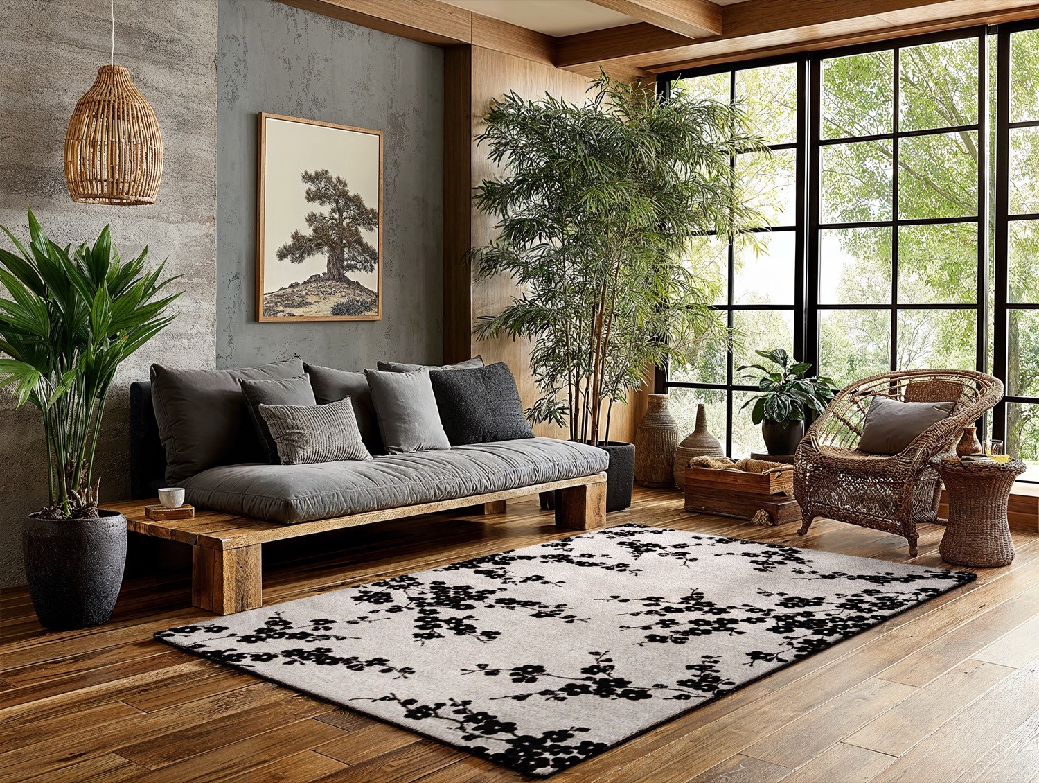 Model SAKURA NIGHT SNOW 9835 łączy kontrastujące barwy: czystą biel i głęboki grafit, tworząc minimalistyczną, a zarazem poetycką kompozycję. Wzór kwiatów wiśni subtelnie zarysowuje się na tle niczym oszronione gałązki w zimowy poranek. Idealny do nowoczesnych wnętrz o oszczędnej formie – sypialni, salonu czy przestrzeni medytacyjnej. Dostępny w wersji prostokątnej i okrągłej.