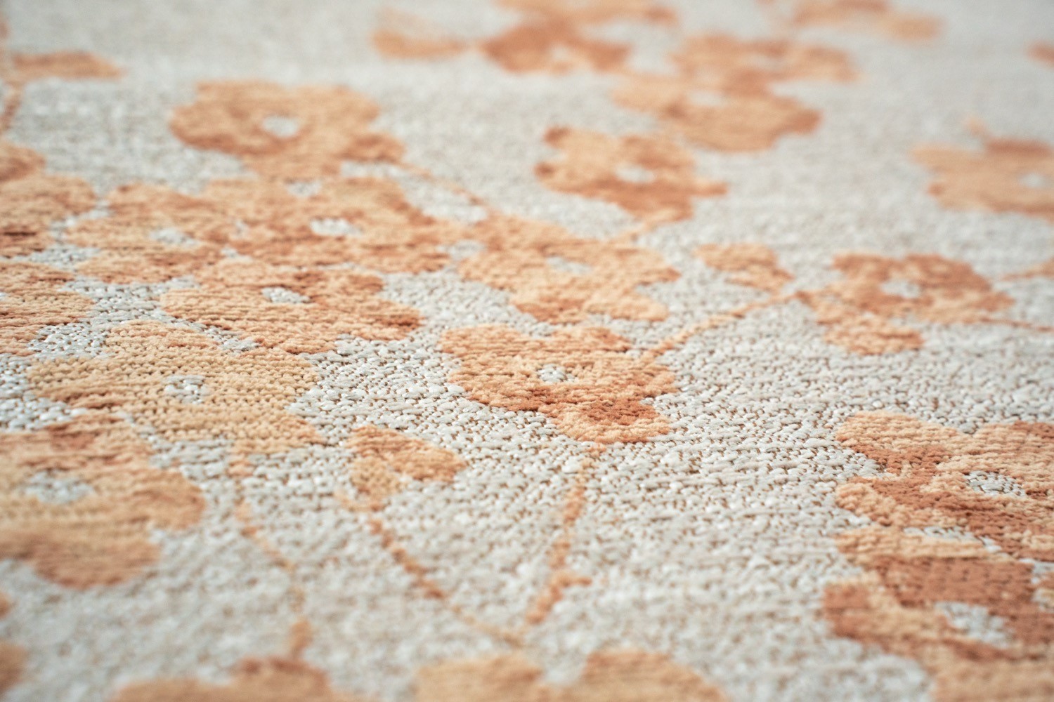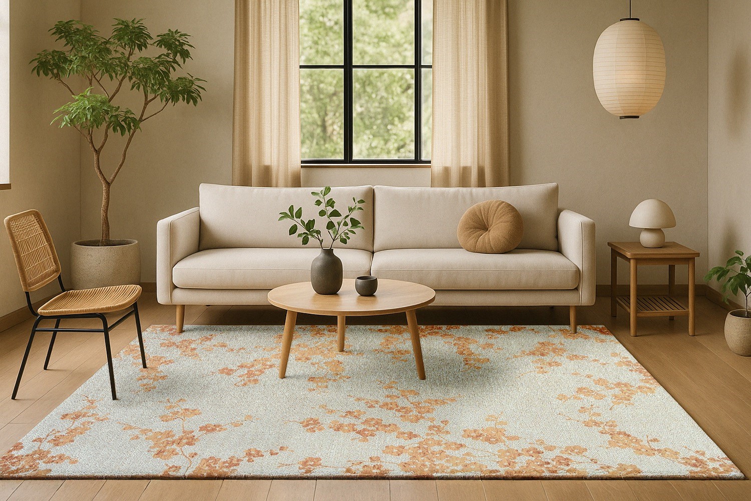 SAKURA PETAL DEW 9834 to harmonijne połączenie naturalnego beżu i akcentów w odcieniach pomarańczowych, inspirowane estetyką japońskich ogrodów. Motyw rozproszonych kwiatów wiśni nadaje dywanowi lekkości i poetyckiego wdzięku, a ciepła kolorystyka wprowadza przytulny klimat do każdego wnętrza. Dostępny w wersjach prostokątnej i okrągłej, sprawdzi się zarówno w sypialni, salonie, jak i pokoju dziecięcym.