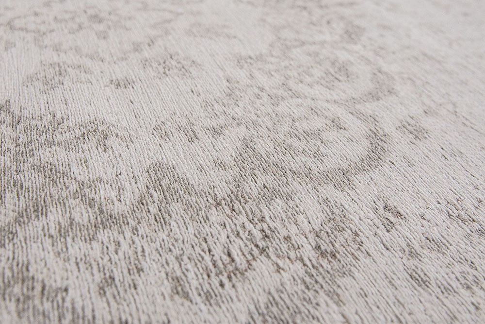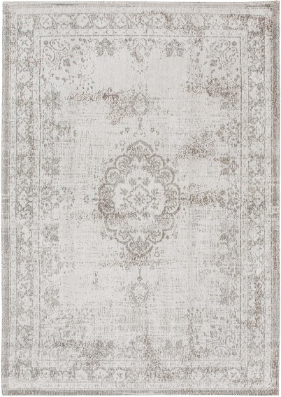 Klasyczny biały dywan vintage vintage - SALT i PPITRO 8383 prestiżowej belgijskiej marki Louis De Poortere z kolekcji Fading World Medallion . Subtelna kompozycja kolorystyczna dywanu sprawia, że idealnie pasuje do każdego rodzaju wnętrza. Styl tej kolekcji przywodzi na myśl klasyczny perski dywan, który nigdy się nie nudzi! Wykonany jest ze 100% bawełny szenilowej, dzięki czemu dywan jest przyjemny w dotyku. Dlaczego ten dywan? Dywany naturalne mają wiele zalet. Wnętrzu nadaje niezwykły szlachetny charakter, a sam dywan pomaga oczyścić powietrze z kurzu. Grubo tkana na płasko tkanina żakardowa sprawia, że dywany naturalne są bardzo trwałe i odporne na odkształcenia spowodowane ciężarem mebli. Możesz więc bez problemu ją przenieść, jeśli zdecydujesz się zorganizować wnętrze w inny sposób. A co z czyszczeniem dywanów? Jej całkowita grubość to około 1 cm, dzięki czemu bardzo łatwo ją odkurzyć. Splot listwowy gwarantuje, że nie będziesz mieć „niespodzianek”, które można znaleźć w dywanach z wysokim włosiem. Dodatkowym atutem jest zintegrowana gumowa podstawa maty, dzięki której mata nie „wędruje” po podłodze podczas codziennego użytkowania. Masz psa lub kota? Nie martw się, że zrujnują Twój nowy zakup. Runo tego dywanu jest cięte i nie ma pętli, które mogłyby złapać pazury Twojego zwierzaka.