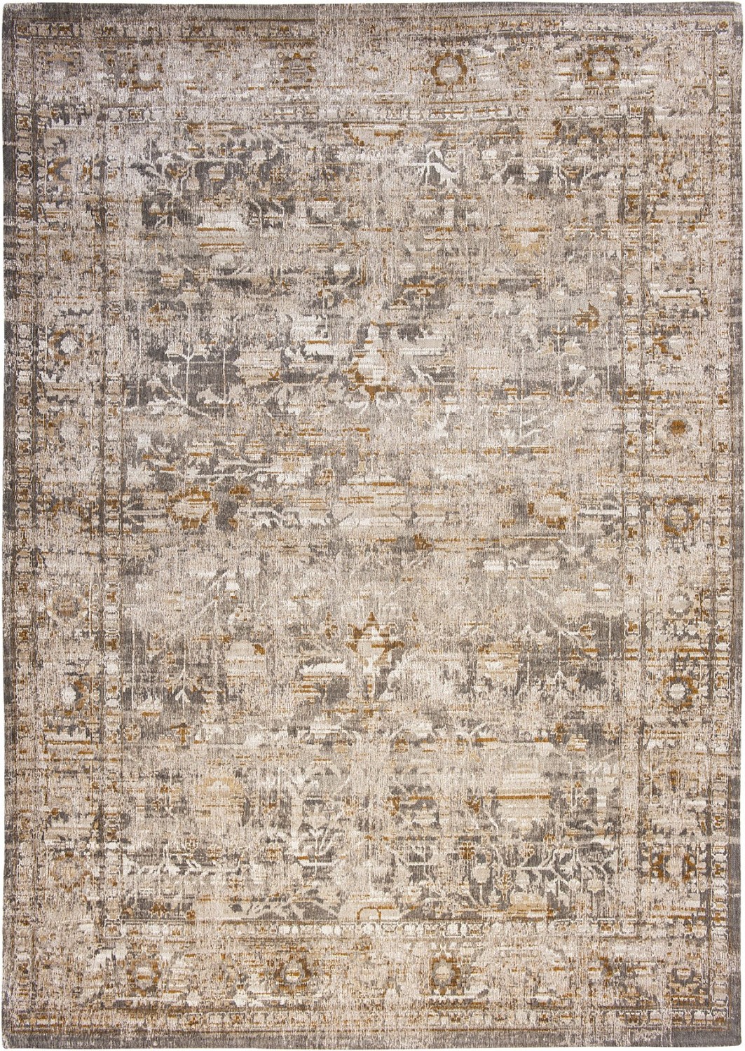 Dywan Vintage Beige - SULEIMAN GREY 888 , prestiżowa belgijska marka Louis De Poortere, De Antiquarian Handschlu Wykonany w 100% z bawełny szenilowej, która sprawia, że dywan jest przyjemny w dotyku, poprawia akustykę pomieszczenia, a jego oddychająca struktura usuwa kurz i chemikalia zachowując ciepło, które oczyszcza oddech. Płaski splot z gęstym splotem żakardowym pozwala uzyskać bardzo szczegółowy i szczegółowy wzór, zapewniając jednocześnie wytrzymałość i, bardziej niż grube dywany, odporność na wypaczanie się pod ciężarem mebli. Ponadto dywan jest łatwy w utrzymaniu czystości dzięki niskiemu włosiu, które łatwo się odkurza. Dzięki gumowej powłoce na spodzie maty mata jest stabilna i nie przesuwa się. Materiał Mat charakteryzuje się niską palnością, a jednocześnie wysoką przewodnością cieplną (certyfikat), dzięki czemu doskonale sprawdza się zarówno w pomieszczeniach kominkowych, jak i ogrzewaniu podłogowym.