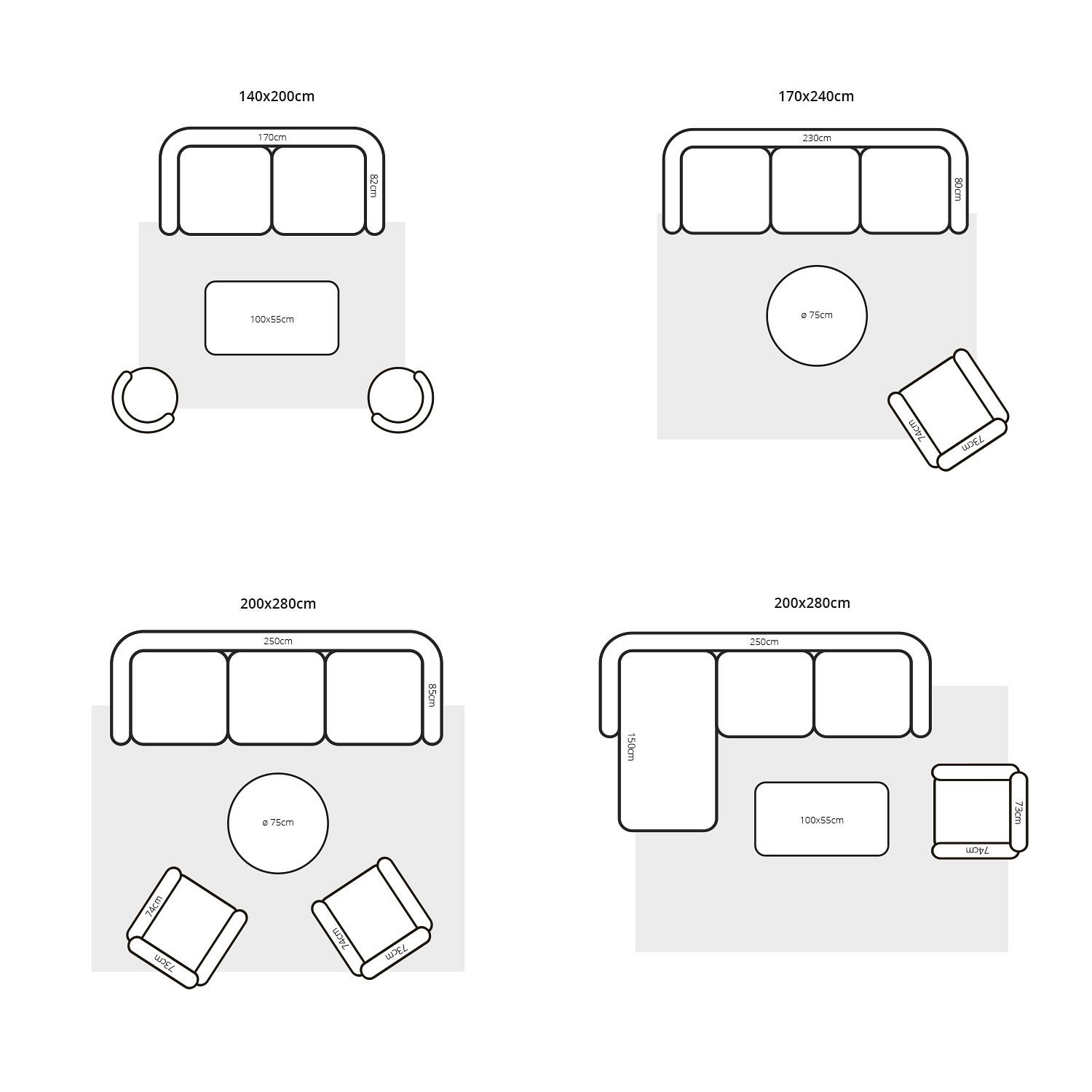 *Dopuszczalne jest standardowe odchylenie od podanych wymiarów do 5%, a także nieznaczna nierówność krawędzi dywanu.