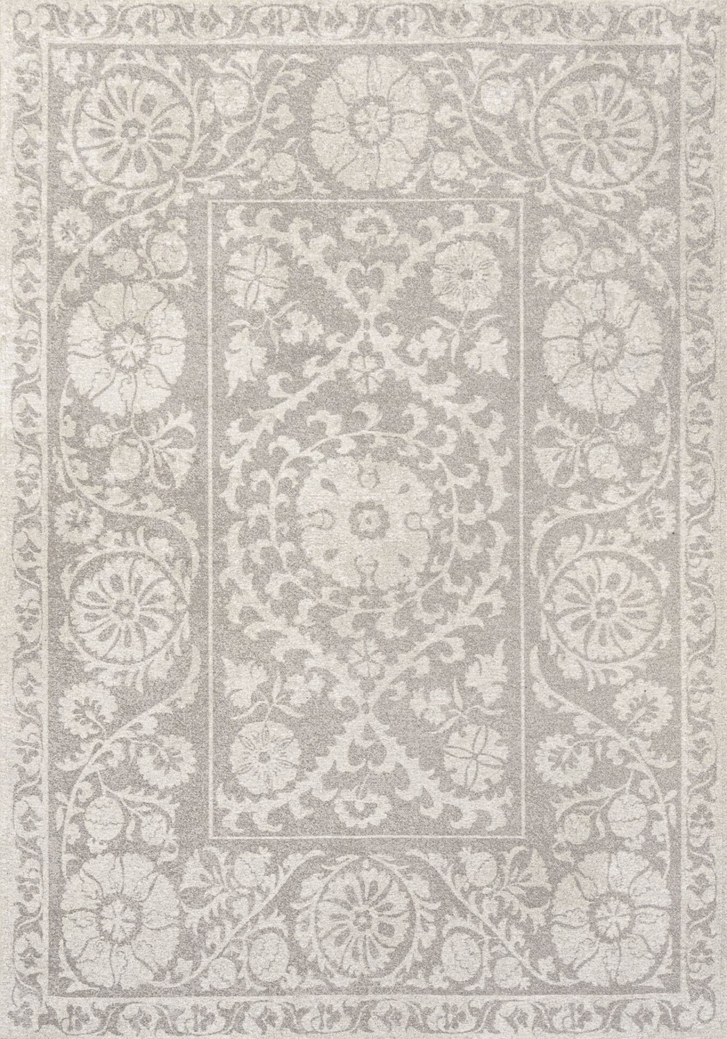 SUZANI BOREE 9846 to propozycja dla osób ceniących etniczne motywy w nowoczesnym wydaniu. Dywan łączy w sobie delikatne, przecierane wzory inspirowane ręcznym haftem z chłodną paletą barw – dominują tu szarości, biele i błękity. Doskonale współgra z aranżacjami skandynawskimi i minimalistycznymi, dodając im przytulności.