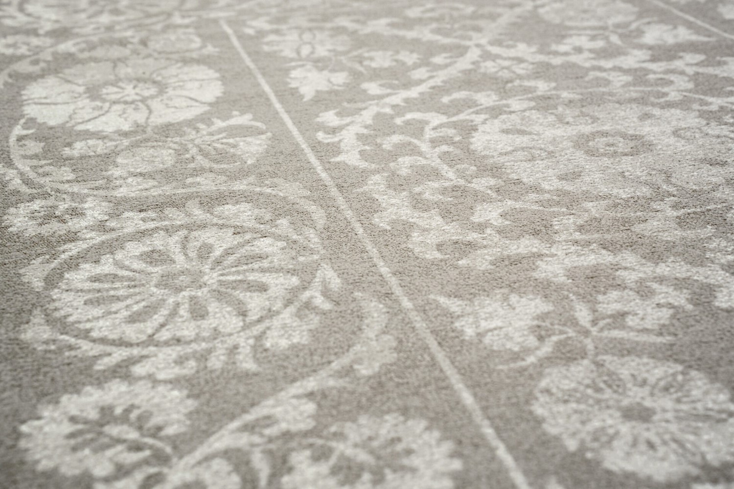 SUZANI BOREE 9846 to propozycja dla osób ceniących etniczne motywy w nowoczesnym wydaniu. Dywan łączy w sobie delikatne, przecierane wzory inspirowane ręcznym haftem z chłodną paletą barw – dominują tu szarości, biele i błękity. Doskonale współgra z aranżacjami skandynawskimi i minimalistycznymi, dodając im przytulności.