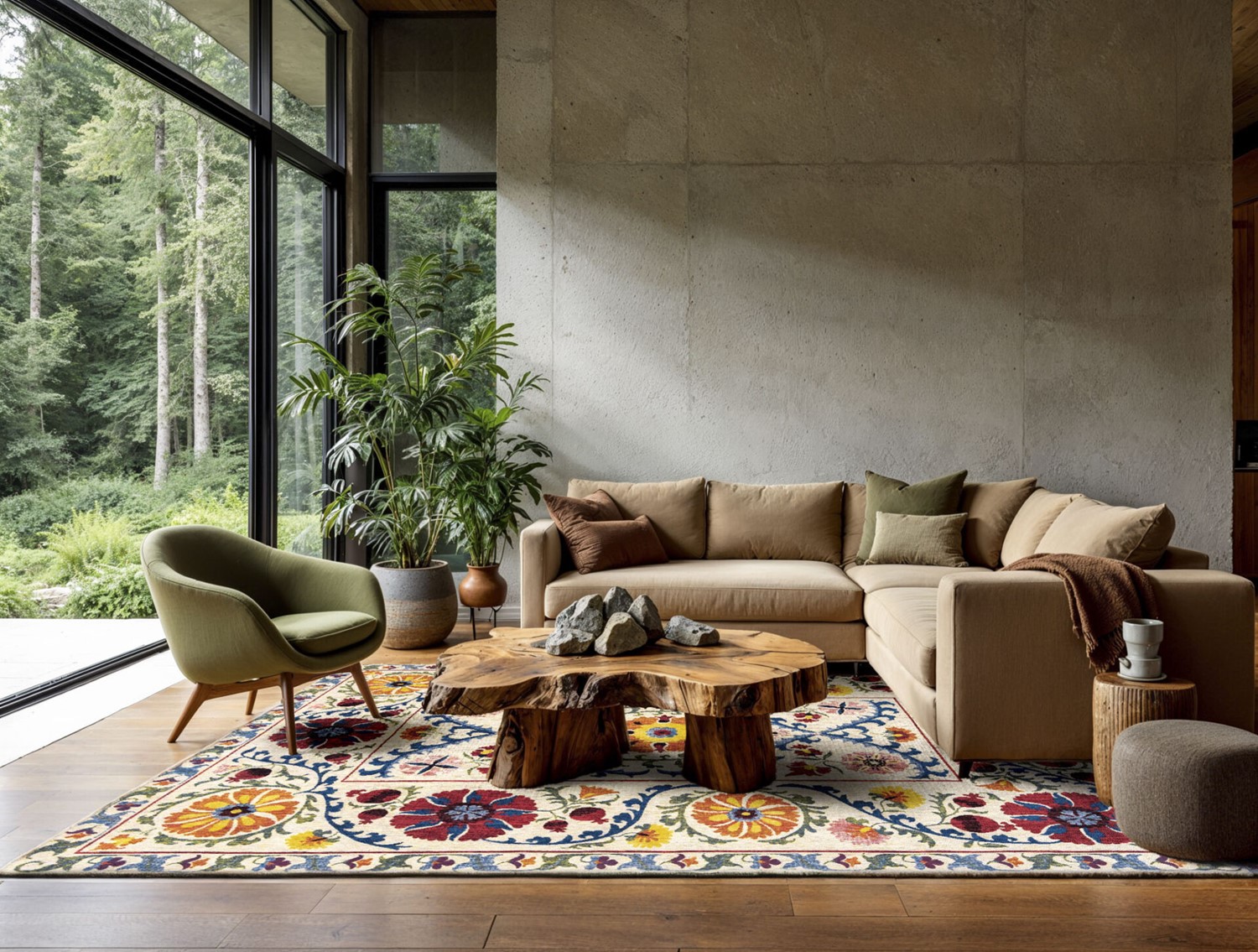 SUZANI ORIGINE 9728 zachwyca tradycyjnym wzorem przywodzącym na myśl ręcznie haftowane tkaniny. Kolorystyka oscyluje wokół naturalnych barw: beżu, ecru, zgaszonych błękitów. Dywan doskonale pasuje do stylu vintage i etno, tworząc harmonijną bazę dla różnych dodatków.