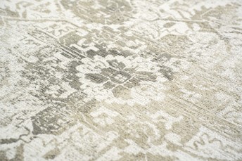 TABRIZ SUEDE 9647 to dywan, który łączy klasyczne perskie wzory z modną, przecieraną strukturą. Jego kolorystyka oscyluje wokół odcieni ciepłego beżu i subtelnych brązów, co czyni go uniwersalnym dodatkiem do wielu stylów wnętrzarskich – od klasycznego, przez vintage, aż po boho. Detale w ornamentach oraz wyblakłe krawędzie tworzą efekt zużytej tkaniny z historią. Ten model świetnie prezentuje się zarówno na tle drewnianej podłogi, jak i nowoczesnych płytek czy wykładzin. TABRIZ SUEDE to połączenie estetyki dawnych czasów z funkcjonalnością współczesnego wnętrza – dywan elegancki, ale i odporny na codzienne użytkowanie.