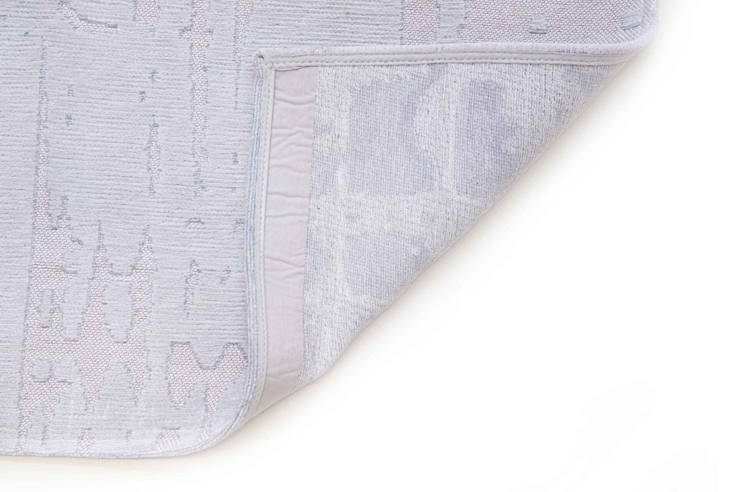 Wykonany jest w 100% z poliestru, dzięki czemu dywan jest przyjemny w dotyku. Tkane na płasko z gęstymi szwami metodą splotu żakardowego można uzyskać bardzo drobny i szczegółowy wzór, zapewniając jednocześnie trwałość i większą odporność na odkształcenia pod ciężarem mebli niż grube dywany. Ponadto dywan jest łatwy do utrzymania w czystości dzięki niskiemu włosiu i można go łatwo odkurzać. Dywan jest stabilny i nie przesuwa się dzięki gumowej powłoce na spodzie dywanu.
