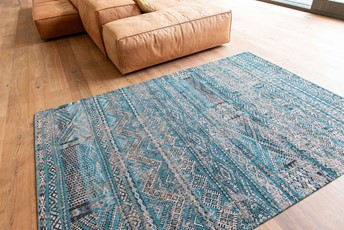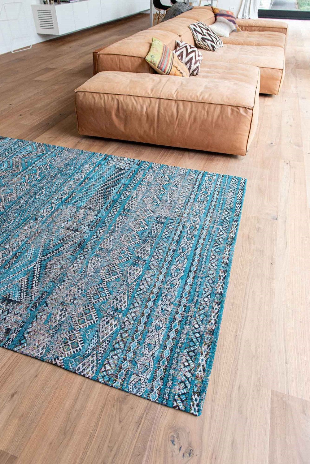Wielokolorowy dywan kilmowy - ZEMMURI BLUE 9110, prestiżowa belgijska marka Louis De Poortere, z kolekcji Antiquarian. Wykonany jest z 85% bawełny szenilowej (z dodatkiem 15% wełny), co sprawia, że dywan jest przyjemny w dotyku, poprawia akustykę pomieszczenia, a oddychająca struktura utrzymuje ciepło, nie dopuszczając do kurzu i chemikaliów, oczyszczając w ten sposób powietrze . Twój oddech Tkanie płaskie z gęstym splotem żakardowym pozwala uzyskać bardzo szczegółowy i szczegółowy wzór, zapewniając jednocześnie wytrzymałość i, bardziej niż grube dywany, odporność na odkształcenia pod ciężarem mebli. Ponadto dywan jest łatwy w utrzymaniu czystości dzięki niskiemu włosiu, które łatwo się odkurza. Dzięki gumowej powłoce na spodzie maty mata jest stabilna i nie przesuwa się. Materiał, z którego wykonana jest wykładzina ma niską palność, ale zachowuje wysoką przewodność cieplną (certyfikat), dzięki czemu doskonale sprawdza się zarówno w pomieszczeniach kominkowych, jak i ogrzewaniu podłogowym.