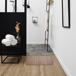 Dywanik łazienkowy Wood o wymiarach 40x60 cm to stylowy i praktyczny dodatek do każdej łazienki. Wykonany z ultra chłonnej mikrofibry, szybko wchłania wodę, zapewniając suchą i bezpieczną podłogę. Jego elegancki wzór drewna w odcieniach beżu i brązu dodaje wnętrzu ciepła i naturalnego uroku. Prostokątny kształt sprawia,