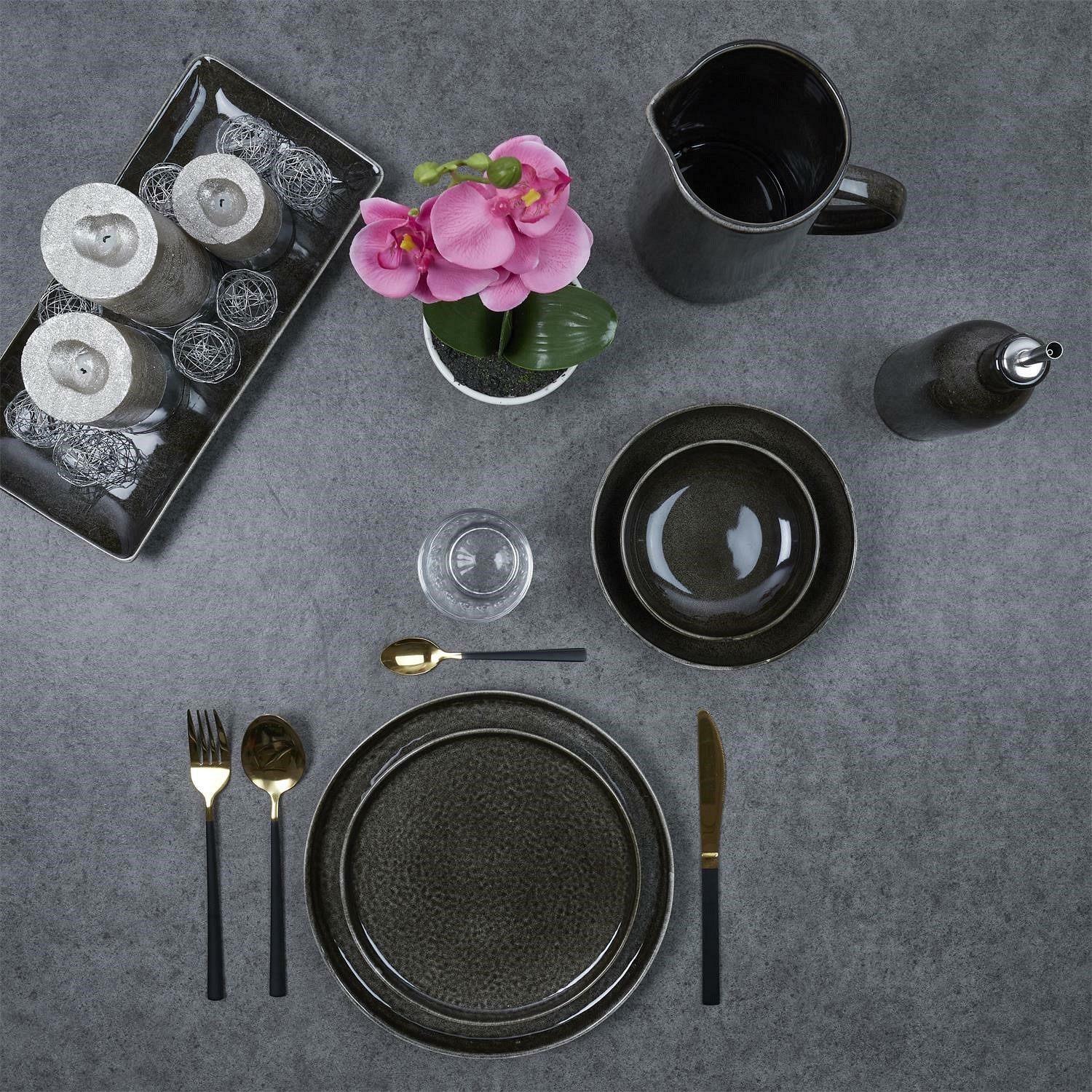 Dzbanek Negro jest jednym z elementów całej kolekcji. Kolekcja Negro charakteryzuje się ceramiką w kolorach ziemi. Są to naczynia o naturalnych kolorach bez zbędnych sztucznych barwników. Dzbanek Negro jest nieprzeciętny, dlatego będzie ciekawym naczyniem na oranżadę lub wodę. Naturalny surowy wygląd dzbanka będzie przede wszystkim ciekawym elementem wnętrza w stylu boho. Materiał: ceramika - Pojemność: 1,5L. Wymiary opakowania: 26,00 x 31,00 x 40,50cm