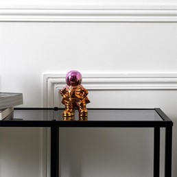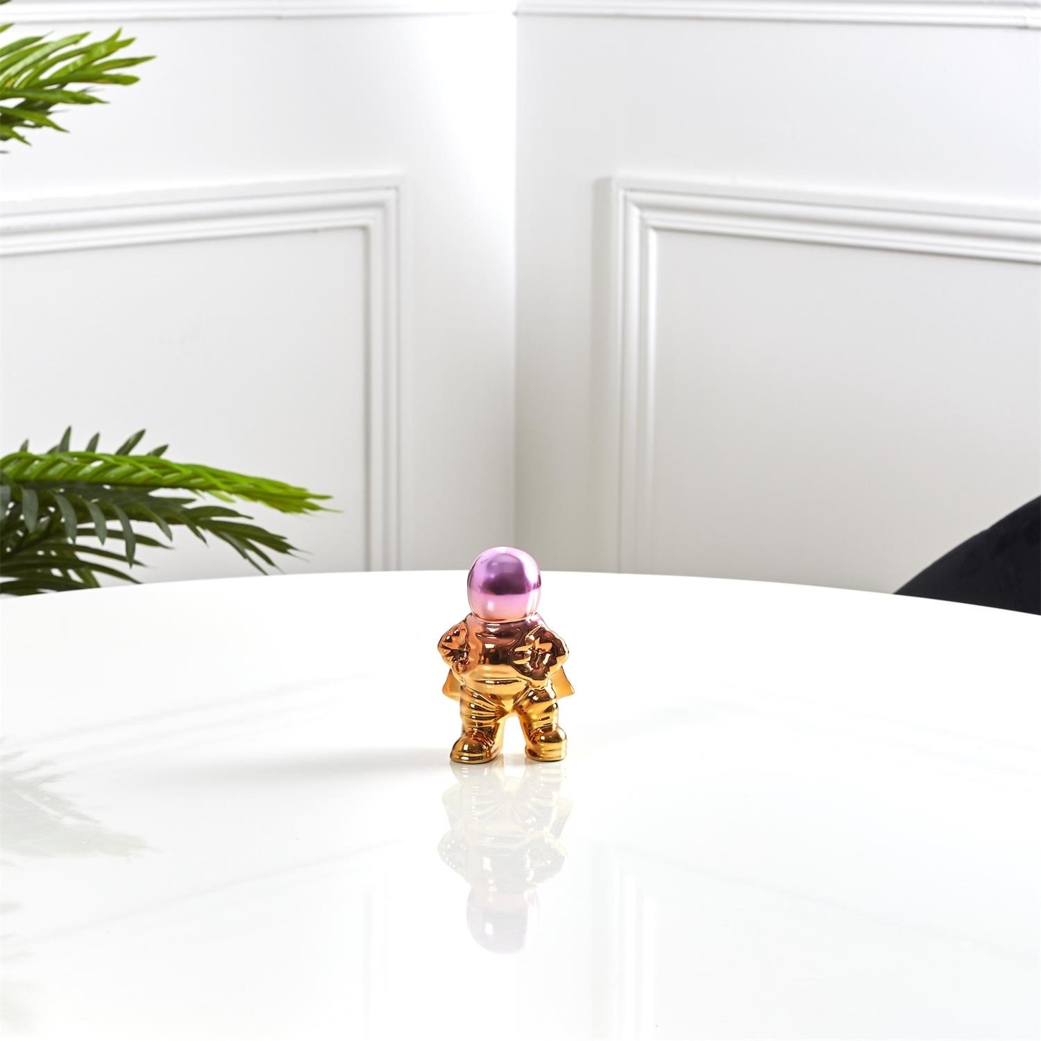 Figurka dekoracyjna przedstawiająca astronautę w kombinezonie w kolorze różowym. Doskonały dodatek do pokoju lub biura dla miłośników kosmosu i podróży kosmicznych. Wykonana z trwałego materiału, idealna do wystawienia na półce lub biurku. Podnosi ona estetykę pomieszczenia i dodaje odrobinę futurystycznego uroku. Idealny prezent dla fanów astronomii i nauki. To interesujący element wystroju wnętrz, który może być doskonałym dodatkiem do pokoju dziecięcego, biura lub salonu. Astronauta symbolizuje marzenia o podróżach kosmicznych, odkrywaniu nieznanego i pewnej dawce odwagi i determinacji.