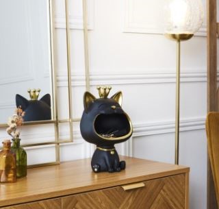 Figurka Kot do przechowywania w kolorze czarno-złotym to elegancki i praktyczny dodatek do wnętrza. Wykonana z wysokiej jakości materiałów, figurka przedstawia stylowego kota, który nie tylko dodaje uroku, ale również pełni funkcję praktyczną. Idealna do przechowywania drobnych przedmiotów, takich jak biżuteria, klucze czy monety, figurka łączy estetykę z funkcjonalnością. Czarno-złota kolorystyka nadaje jej luksusowy wygląd, który doskonale komponuje się z nowoczesnymi i klasycznymi aranżacjami wnętrz. To wyjątkowy element dekoracyjny, który wprowadza elegancję i porządek do każdego pomieszczenia.