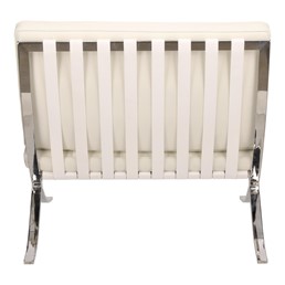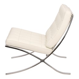 Fotel BA1 jestinspirowany projektem fotela Barcelona. Barcelona to zaprojektowany w 1929 roku fotel, który powstał na zamówienie i stanął w niemieckim pawilonie na wystawie w Barcelonie.,Charakterystycznie powyginana w kształt litery "X" chromowana podstawa oraz pikowana w kwadraty naturalna skóra to najbardziej charakterystyczne cechy tego fotela. Uzupełnieniem tego fotela jest Barcelona Ottoman i Barcelona,stolik.,Fotel wykonany całkowicie ze skóry naturalnej.