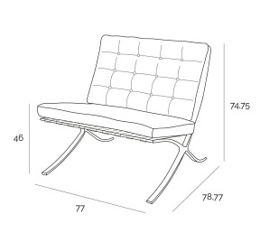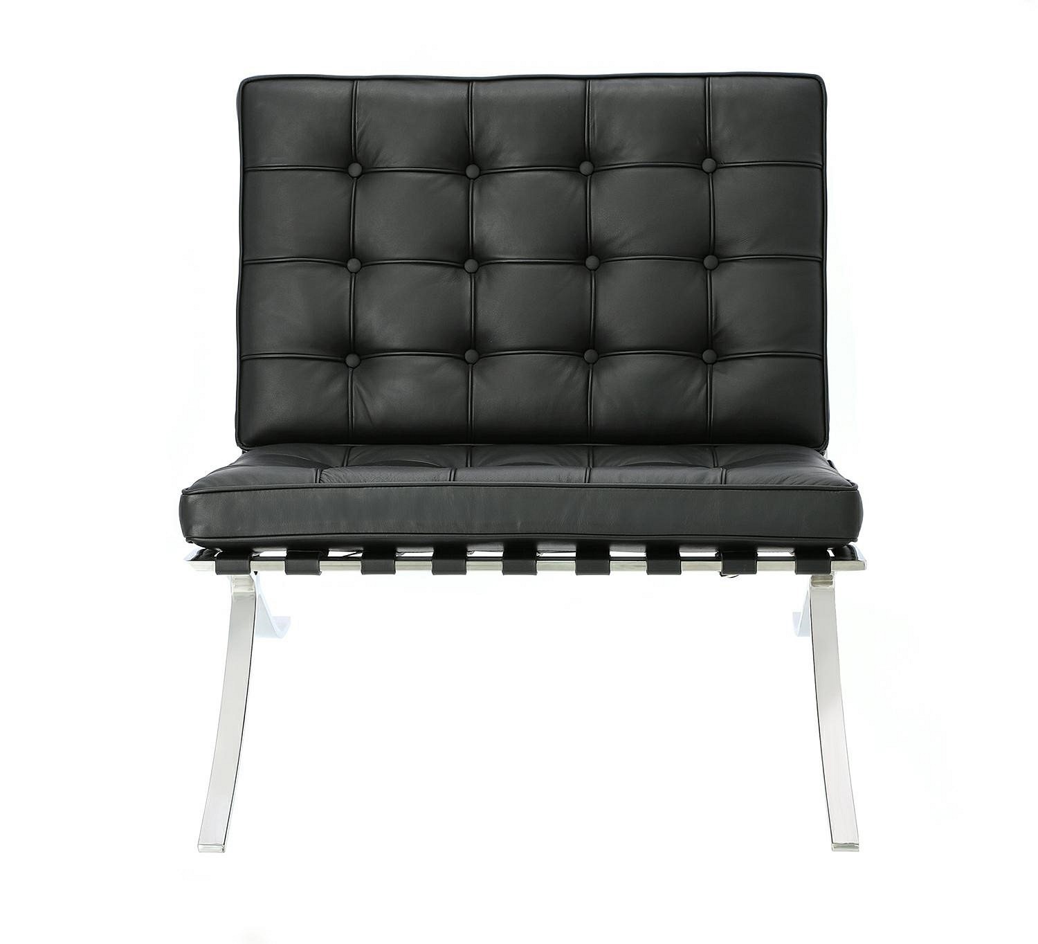 Fotel BA1 jestinspirowany projektem fotela Barcelona. Barcelona to zaprojektowany w 1929 roku fotel, który powstał na zamówienie i stanął w niemieckim pawilonie na wystawie w Barcelonie.,Charakterystycznie powyginana w kształt litery "X" chromowana podstawa oraz pikowana w kwadraty naturalna skóra to najbardziej charakterystyczne cechy tego fotela. Uzupełnieniem tego fotela jest Barcelona Ottoman i Barcelona,stolik.,Fotel wykonany całkowicie ze skóry naturalnej.