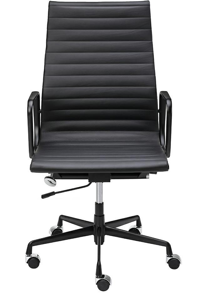Fotel biurowy Aeron Prestige Plus w kolorze czarnym. Minimalistyczna forma która wprowadzi elegancki akcent do twojego biura. Cała konstrukcja wykonana jest wytrzymałego aluminium w czarnym, satynowym kolorze. Siedzisko i oparcie tapicerowane są naturalną skórą w czarnym kolorze. Chromowane kółeczka oraz przeszycia na skórze, podkreślają charakter fotela. Fotel jest obrotowy z funkcją bujania oraz regulacją wysokości w zakresie 11 cm. Wyprofilowane oparcie zapewni odpowiedni komfort i wygodę pracy. Waga netto 1 szt.: 16 kg Waga z opakowaniem: 19 kg Wymiary opakowania: 86 cm x 41 cm x 65 cm Sposób wysyłki: Paczka Maksymalna ilość szt. w opakowaniu: 1 Produkt do samodzielnego montażu: Tak