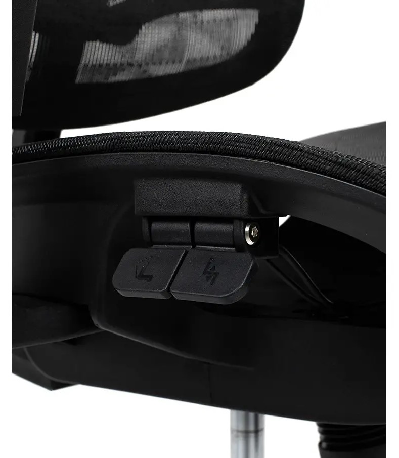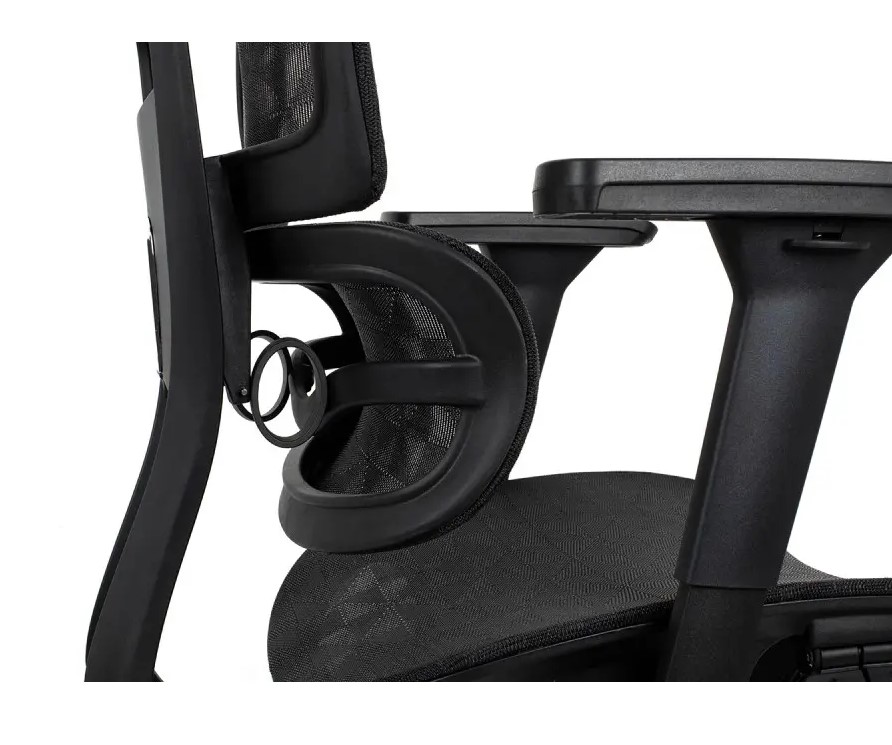 - Ukryte z tyłu uchwyty umożliwiają regulację wysokości oparcia, dzięki czemu fotel będzie też odpowiednim wyborem dla osób wyższych.