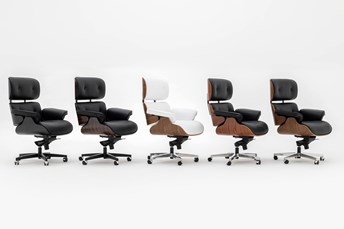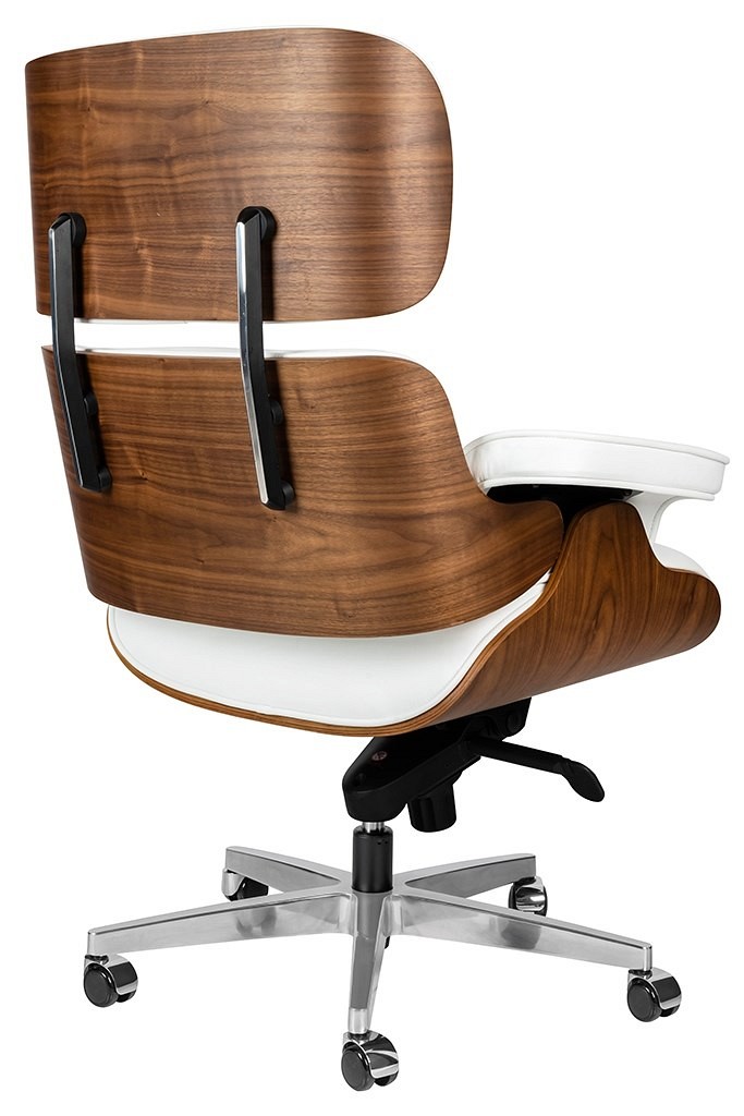Fotel biurowy Lounge Gubernator biały z orzechowym drewnem.