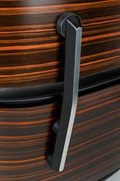 Siedzisko, oparcie oraz podłokietniki tapicerowane są naturalną włoską skórą w kolorze czarnym.