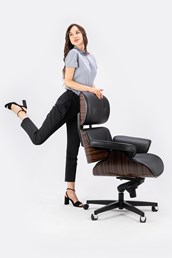Korpus fotela został wykonany z giętej sklejki fornirowanej drewnem hebanowym.