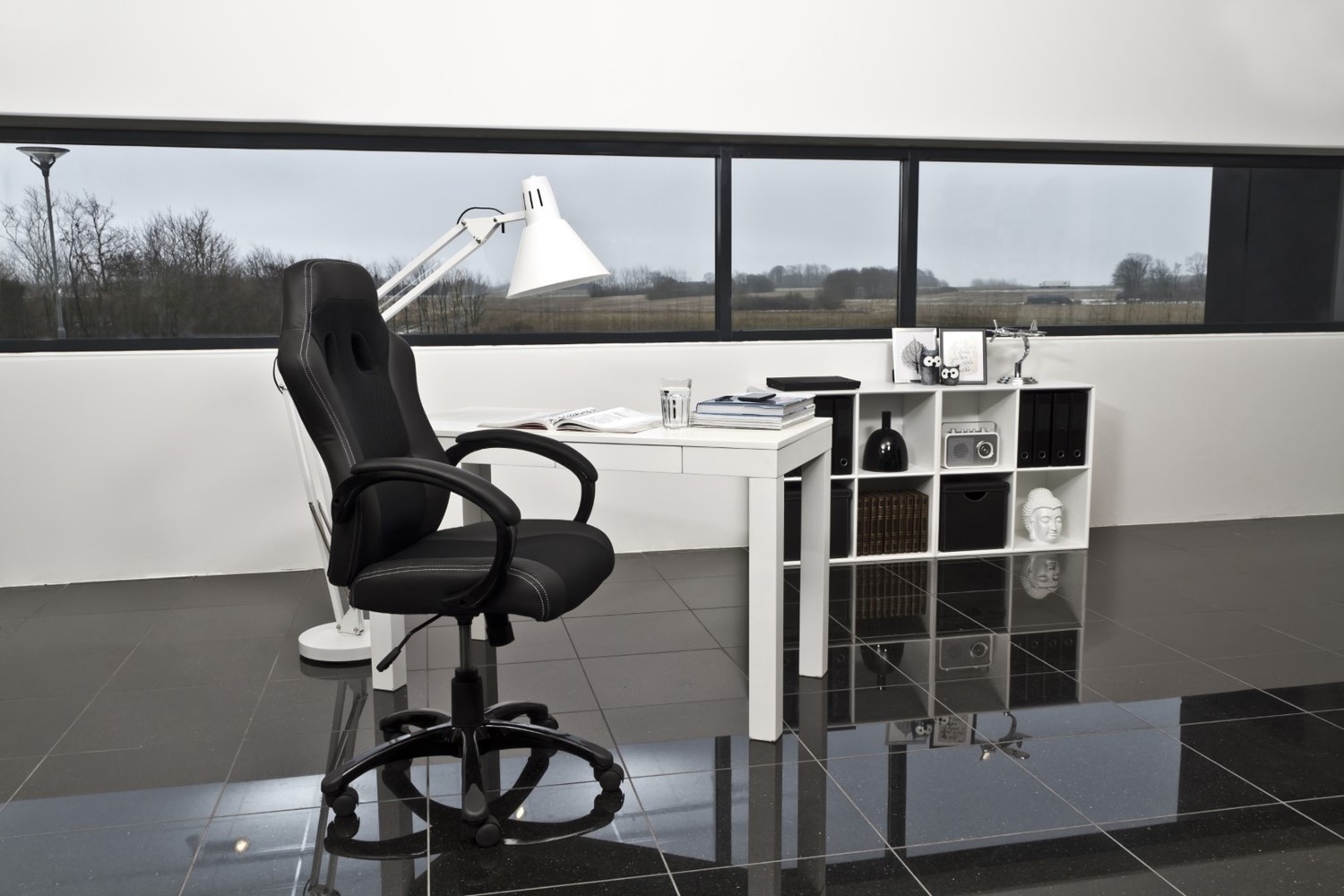 Fotel biurowy Race to elegancki i funkcjonalny mebel, idealny do biura. Wykonany z czarnej ekoskóry, zapewnia trwałość i łatwość w utrzymaniu czystości. Ergonomiczne siedzisko i oparcie są doskonale dopasowane do kształtu kręgosłupa, co gwarantuje komfort nawet podczas długich godzin pracy. Fotel posiada regulowaną wysokość oraz funkcję bujania, co pozwala na dostosowanie go do indywidualnych potrzeb użytkownika. Solidna, chromowana podstawa z kółkami zapewnia stabilność i mobilność. Idealny wybór dla osób ceniących sobie wygodę i styl w miejscu pracy.