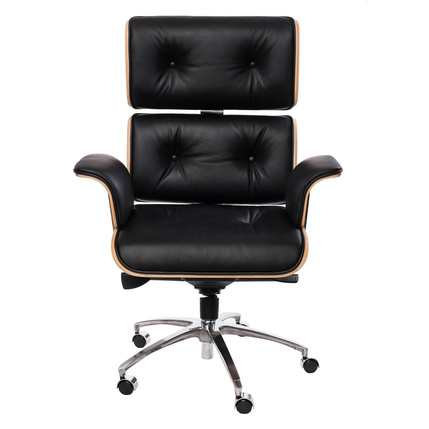 Fotel biurowy VIP jest ekskluzywną wersją krzesła inspirowanego EA119. Siedzisko i oparcie zostały wyłożone miękkimi poduszkami zwiększającymi komfort użytkowania. Fotel został obity naturalną skórą. Oparcie oraz siedzisko fotela wzmocnione zostało fornirem,który dodaje klasy i elegancji całości projektu. Podstawa na kółkach wykonana jest z polerowanego aluminium. Fotel posiada mechanizm regulacji wysokości oraz kołyski a dodatkowo zabezpieczenie oparcia po zwolnieniu blokady.