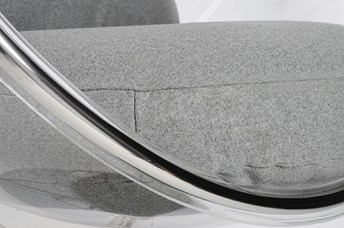 Korpus krzesła wykonany jest z wysokiej jakości akrylu i zawieszony na chromowanych stalowych podłokietnikach. Wysięgnik stoi na stabilnej obrotowej podstawie. Zastosowanie tych materiałów nadaje fotelowi elegancki i nowoczesny wygląd. Z pewnością będzie świetnym dodatkiem do wystroju Twojego wnętrza i doda stylu i charakteru całemu Twojemu domowi. Fotel bąbelkowy dostępny jest również w wersji wiszącej.