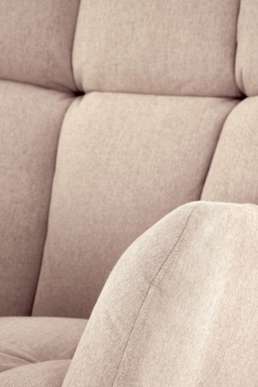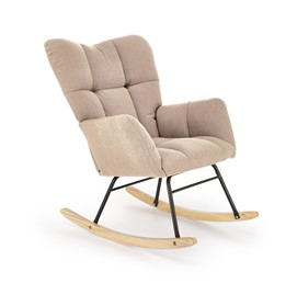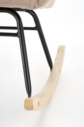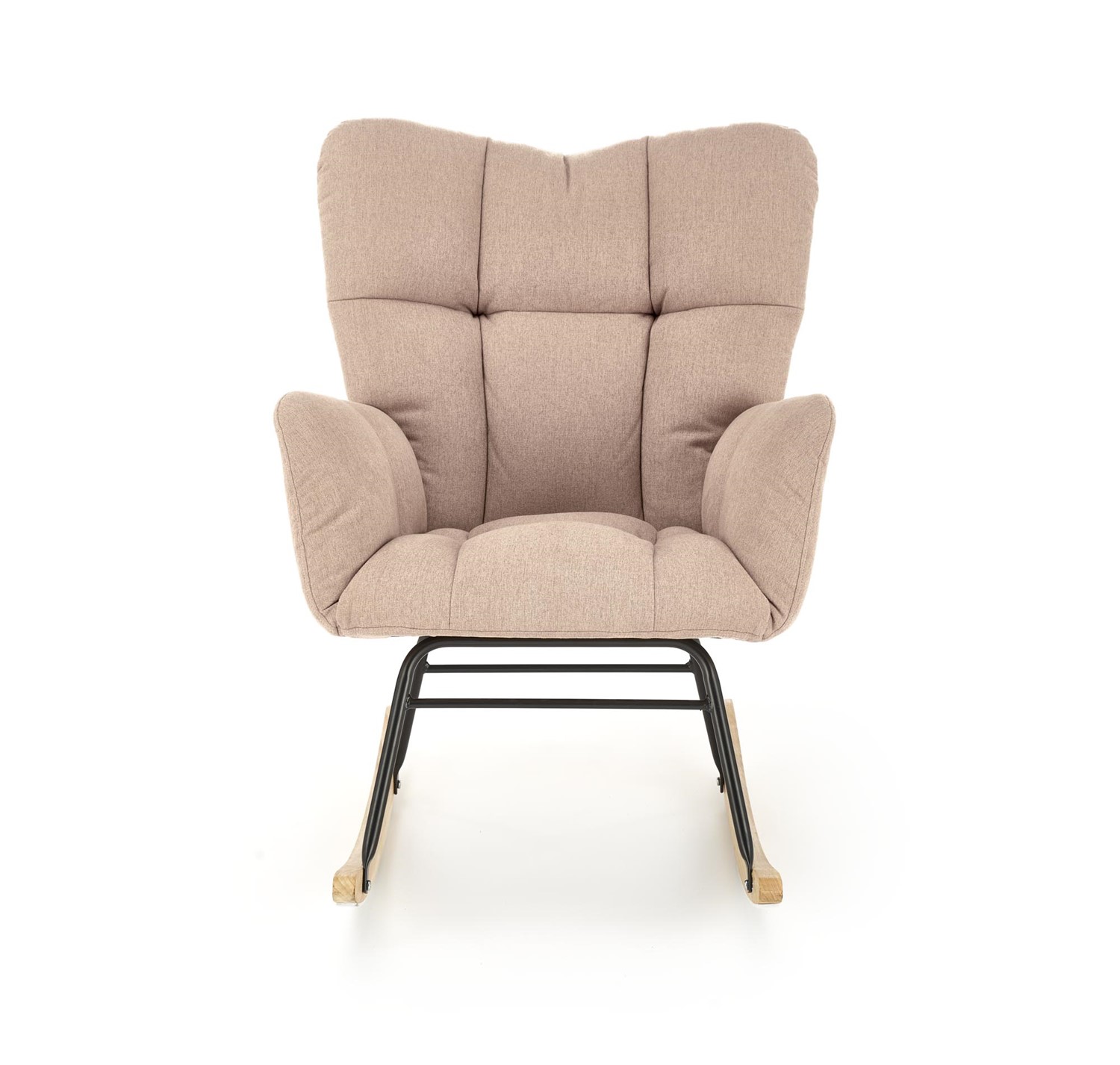 Fotel bujany o nowoczesnym stylu wykonania to idealne połączenie wygody i elegancji, doskonale pasujące do różnych wnętrz mieszkalnych lub biurowych. Jego konstrukcja opiera się na solidnym metalowym stelażu, zapewniając stabilność i trwałość przez wiele lat użytkowania. Tapicerka fotela wykonana jest z wytrzymałej tkaniny w delikatnym beżowym kolorze, dodając mu subtelnego uroku i harmonizując z różnymi aranżacjami wnętrz.