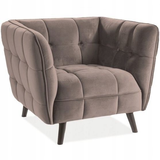 Fotel Castello, to mebel z solidnym, głębokim pikowaniem oraz plamoodporną tapicerką. Wyrób ma solidnie wykonane nogi, które są ustawione krawędziami do zewnątrz, pod katem 45 stopni, co dodaje temu produktowi interesującego i bardzo efektownego wyglądu. To wspaniały wyrób meblarski!