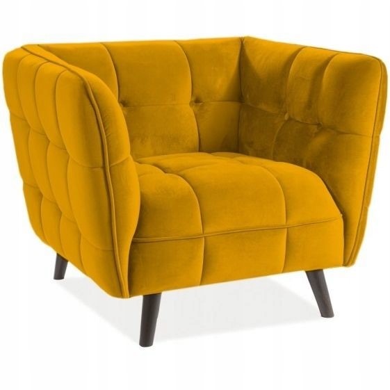 Fotel Castello, to mebel z solidnym, głębokim pikowaniem oraz plamoodporną tapicerką. Wyrób ma solidnie wykonane nogi, które są ustawione krawędziami do zewnątrz, pod katem 45 stopni, co dodaje temu produktowi interesującego i bardzo efektownego wyglądu. To wspaniały wyrób meblarski!