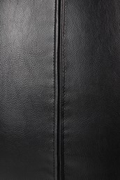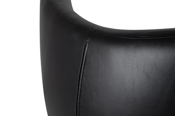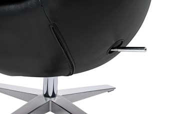 Fotel tapicerowany jest ekoskórą w kolorze czarnym.