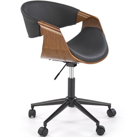 Fotel Bilbo w kolorze orzechowo czarnym emanuje elegancją i klasyką. Odcień orzecha nadaje mu ciepła, podczas gdy czarne detale dodają mu nowoczesnego charakteru. To połączenie kolorów tworzy wyrafinowany wygląd, który doskonale współgra z różnymi aranżacjami gabinetowymi.