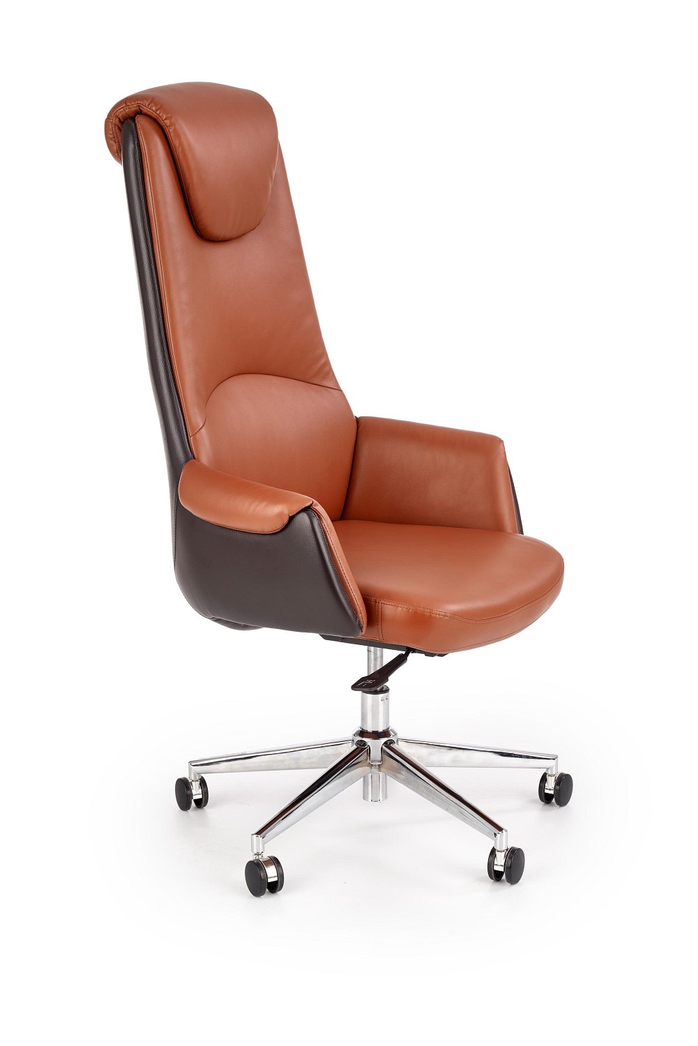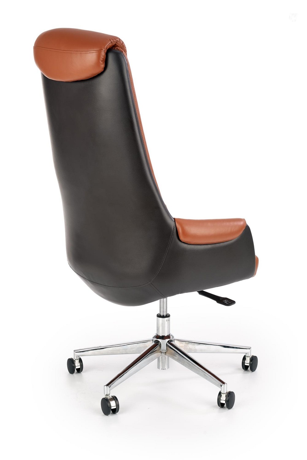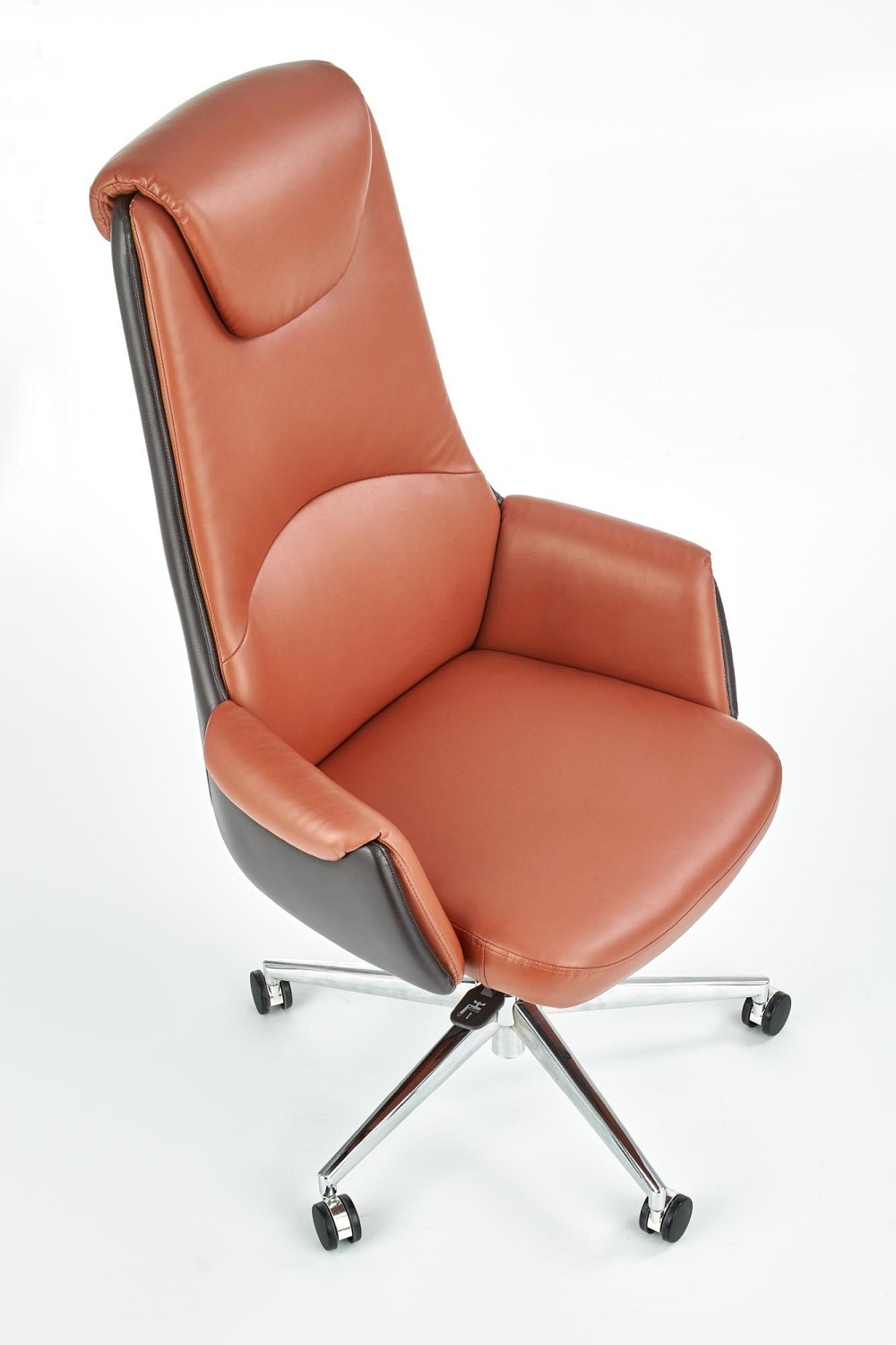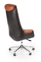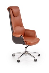 Wygodny i stylowy fotel CALVANO gabinetowy w kolorze ciemno-brązowym doskonale prezentuje się w pomieszczeniach, które urządzone są w stylu nowoczesnym. To mebel, który pasuje do każdego gabinetu i biura domowego, gdzie będzie dbać o wygodę w czasie pracy. Jego forma i konstrukcja sprawiają, że jest to mebel, który zapewnia stabilność i trwałość na długie lata. Wygoda, jaką jest w stanie zagwarantować zadba o to, by w czasie pracy można było skupić się jedynie na wykonywanych zadaniach. Warto wybrać go do swojego biura, ponieważ wygląda on nie tylko stylowo, ale również dba o to, by ciało przybrało odpowiednią i wygodą pozycję. Fotel gabinetowy wykonany jest ze starannością przy wykorzystaniu najwyższej jakości materiałów. To właśnie dzięki temu wyróżnia się wytrzymałością i odpornością. Jego powierzchnia z pewnością nie zmieni swojego wyglądu, dzięki czemu mebel z tej serii będzie Ci służyć przez lata. Do stworzenia tego mebla wykorzystane zostały ekologiczne materiały, a także meta. Skóra ekologiczna zastosowana na oparciu i siedzisku doskonale komponują się z nogami krzyżowymi w kolorze srebrnym. Przekonaj się, dlaczego wybranie mebla z tej serii będzie dla Ciebie doskonałą decyzją: