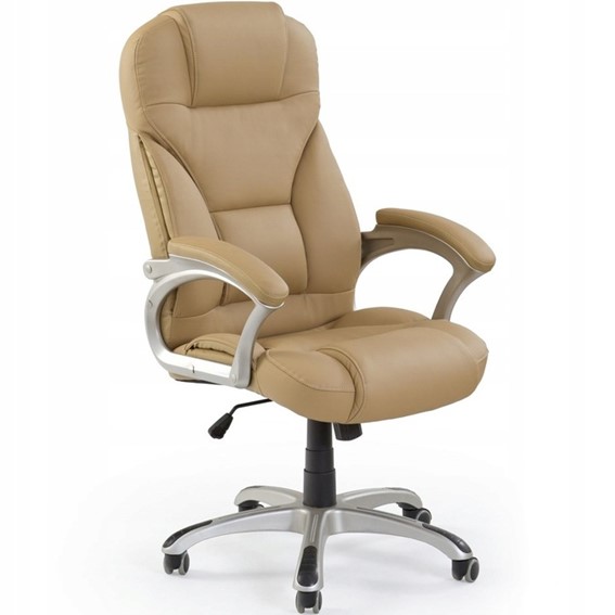 Fotele gabinetowe powinny cechować się wyjątkową wygodą i elegancją. W odpowiedzi na te potrzeby stworzony został Desmond. Spore siedzisko wypełnione zostało miękkim tworzywem i obszyte perforowaną eco skórą. Jego mobilność zapewniają kółka powlekane kauczukiem, dzięki którym krzesło idealnie nadaje się do użytkowania na powierzchni twardej, takiej jak panele. O wygodę dba natomiast wbudowany mechanizm TILT, który zapewnia płynną regulację wysokości, swobodne kołysanie się, obracanie oraz blokadę oparcia podczas użytkowania go w pozycji pionowej.