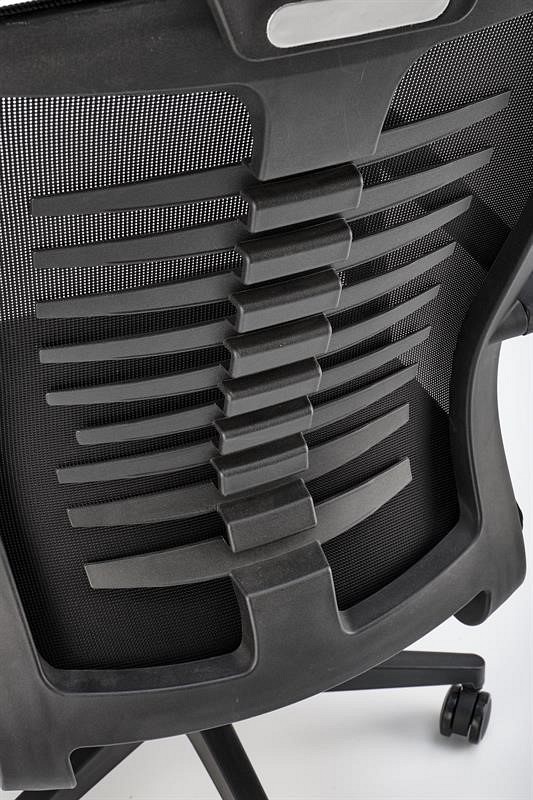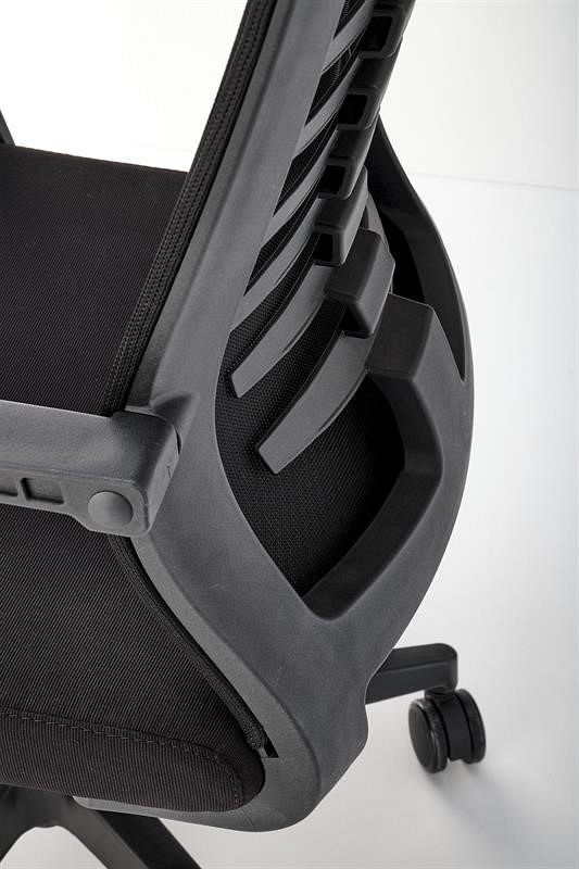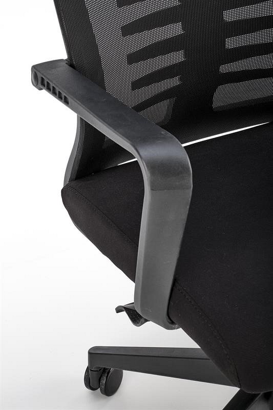 Fotel obrotowy FABIO to doskonała propozycja zarówno do biura, jak i do pokoju nastolatka. Jego tył pokryty jest elastyczną siatką, która zapewnia dobrą cyrkulację powietrza, dzięki czemu użytkownik nie odczuwa przegrzania w upalne dni. Dodatkowo oparcie posiada wygodne podparcie karku, co zwiększa komfort siedzącego. Siedzisko fotela pokryte jest miękką, czarną tkaniną, która zapewnia komfort podczas siedzenia. Fotel posiada również mechanizm TILT, który ułatwia regulację wysokości siedziska, obracanie, obracanie i blokowanie oparcia w pozycji pionowej. Podstawa fotela FABIO posiada plastikowe kółka przystosowane do miękkich powierzchni.
