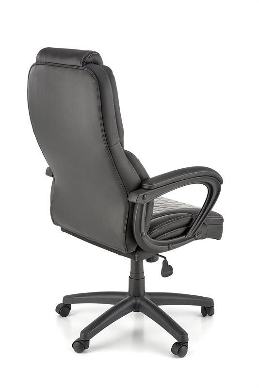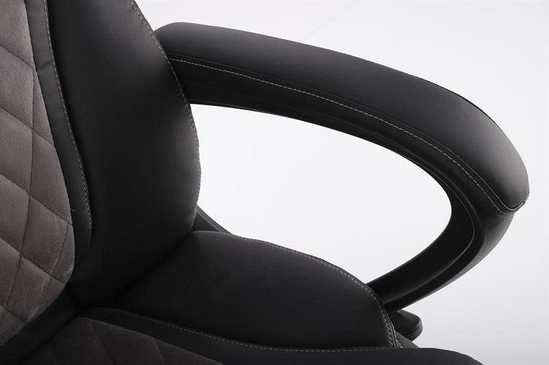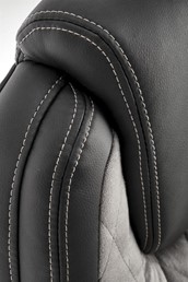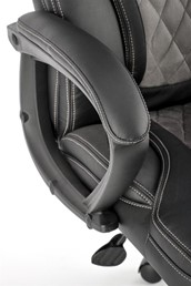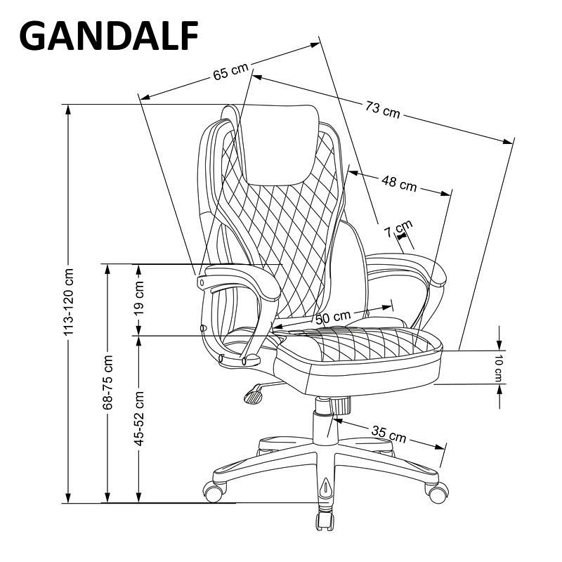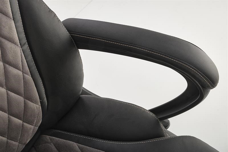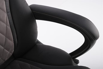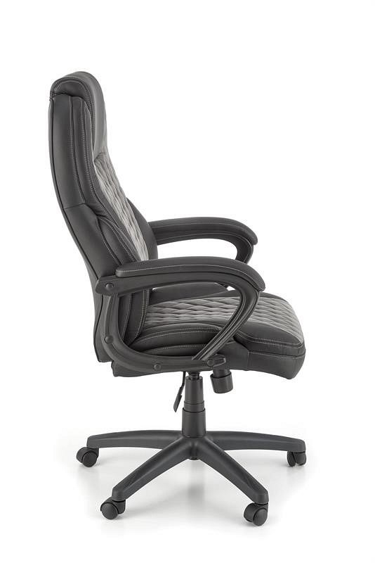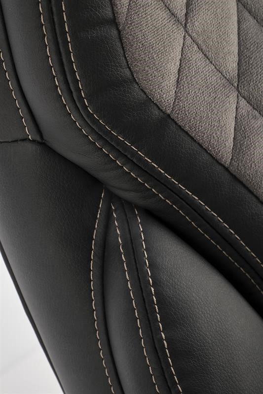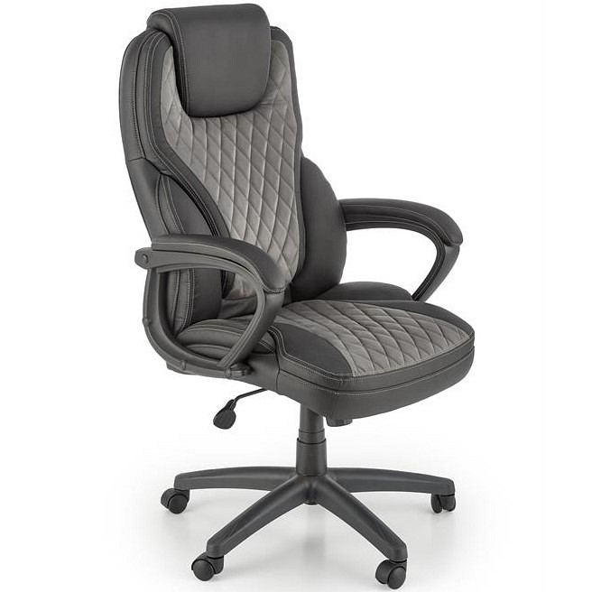 Fotel biurowy GANDALF posiada wygodne oparcie oraz siedzisko pokryte ekoskórą. Dzięki zastosowaniu ekoskóry fotel prezentuje się elegancko i jest łatwy w utrzymaniu czystości. Połączenie szarości i czerni nadaje się zarówno do biura, jak i domowego gabinetu. Dodatkowo oparcie i siedzisko są przeszyte dla dodania uroku. Fotel posiada stałe oparcia. Mechanizm TILT umożliwia płynną regulację wysokości krzesła, zablokowanie oparcia w pozycji pionowej oraz swobodne bujanie i obracanie. Czarna noga poprzeczna z tworzywa sztucznego jest wyposażona w zestaw kółek do podłóg wyłożonych wykładziną i dywanami.