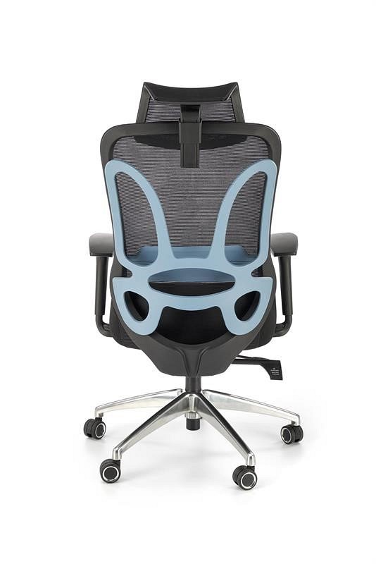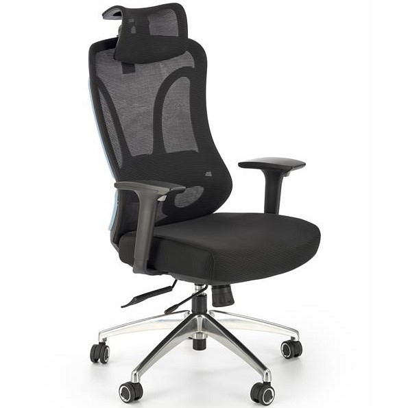 Fotel biurowy GILBERTO to bardzo ergonomiczny fotel biurowy, który łagodzi ból pleców i zapewnia wygodę podczas pracy lub nauki. Zarówno głowa, jak i oparcie pokryte są oddychającą tkaniną siatkową. Dzięki siateczce powietrze cyrkuluje prawidłowo, co zmniejsza uczucie ciepła w upalne dni. Siedzisko pokryte jest tkaniną warstwową. Krzesło posiada regulowane zagłówki i podłokietniki. Podstawa fotela wraz z kółkami do dywanów i wykładzin wykonana jest z aluminium. Fotel GILBERTO posiada mechanizm synchroniczny, który pozwala na płynną regulację wysokości i głębokości siedziska. Oparcie można również zablokować w kilku pozycjach za pomocą mechanizmu.