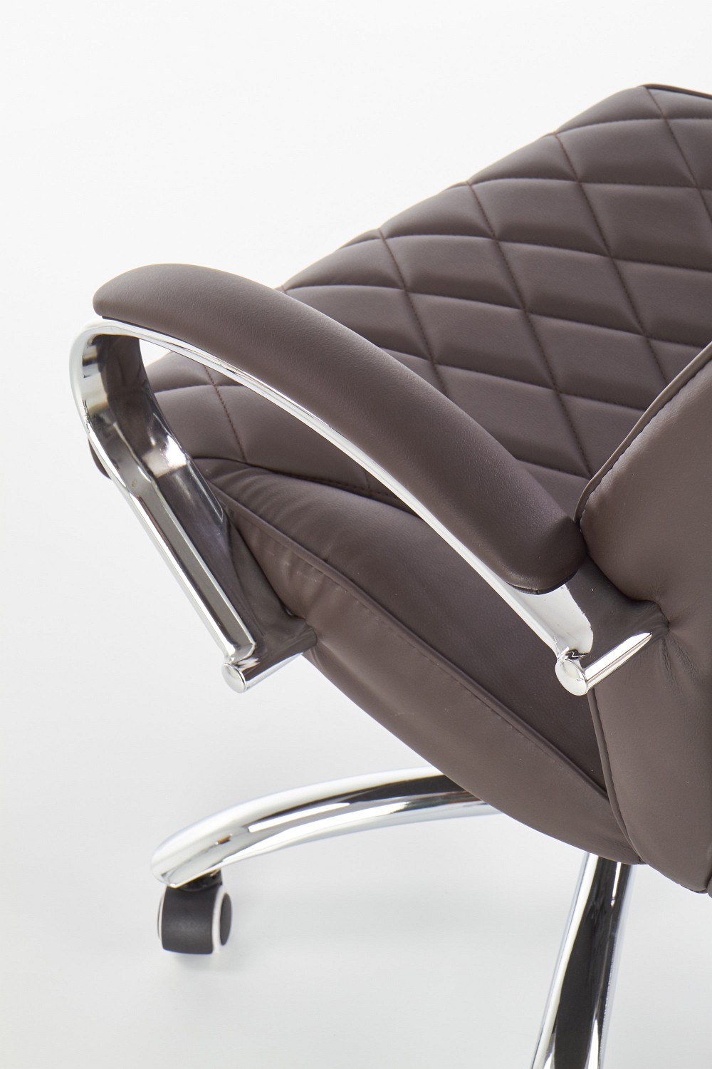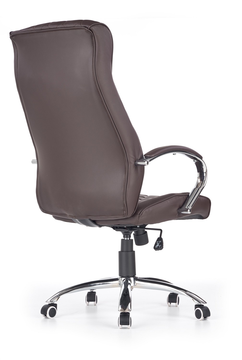 Elegancki fotel obrotowy Hilton oprócz nowatorskiego, a przy tym klasycznego designu, charakteryzuje się wyjątkową wygodą użytkowania. Model obszyto mocną, po części pikowaną,ecoskórą w kolorze czekoladowym. O wygodę jego użytkowania dba mechanizm TILT pozwalający na wychylanie i obracanie fotela. Polecany do biur i gabinetów.