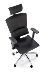 Podstawa fotela wykonana jest z wytrzymałego aluminium, co zapewnia stabilność i trwałość. Siedzisko jest wysuwane, co umożliwia dostosowanie głębokości siedziska do indywidualnych potrzeb. Fotel został wykonany z siatki w kolorze czarnym, co nadaje mu nowoczesny wygląd i zapewnia dobrą wentylację, co jest szczególnie ważne podczas długotrwałego użytkowania.