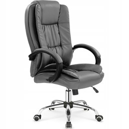 Niepowtarzalny fotel obrotowy Relax oprócz naprawdę ciekawego designu charakteryzuje się wyjątkową wygodą użytkowania, dzięki której spędzając na nim wiele godzin, nie nabawimy się bólu karku czy pleców. Model obszyto mocną ecoskórąw kolorze szarym. O wygodę użytkowania dba mechanizm TILT pozwalający na swobodne obracanie fotela i wychylanie jego oparcia .