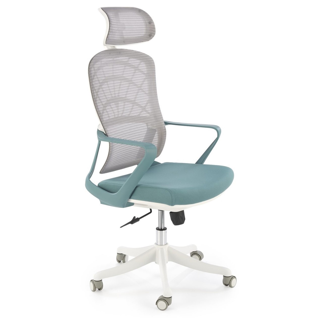 Fotel gabinetowy w kolorze turkusowym i białym łączy w sobie wygodę, funkcjonalność i nowoczesny design, idealny do wykorzystania w profesjonalnym środowisku biurowym. Jego solidna konstrukcja i innowacyjne rozwiązania sprawiają, że jest to niezastąpiony element wyposażenia każdego biura. Fotel wyposażony jest w mechanizm TILT, który umożliwia regulację kąta pochylenia oparcia, co zapewnia dodatkowy komfort podczas długich godzin pracy przy biurku. Ponadto, regulowany zagłówek pozwala dostosować wysokość zagłówka do preferencji użytkownika, co przyczynia się do poprawy ergonomii. Materiały, z których wykonano ten fotel, to wysokiej jakości tkanina i siatka, zapewniające odpowiednią wentylację i wygodę podczas użytkowania.