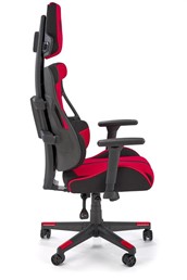 Regulowane podłokietniki zapewniają dodatkowy komfort, umożliwiając dostosowanie ich wysokości i pozycji do preferencji użytkownika. Fotel wykonany jest z wysokiej jakości tkaniny w efektownym czerwono-czarnym kolorze, co nadaje mu dynamiczny i nowoczesny wygląd.