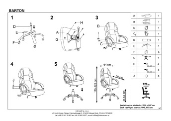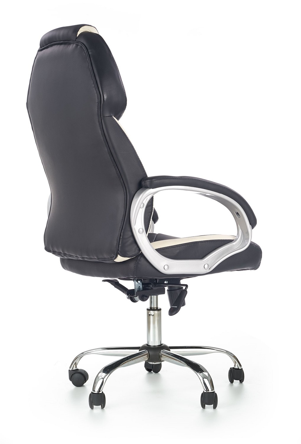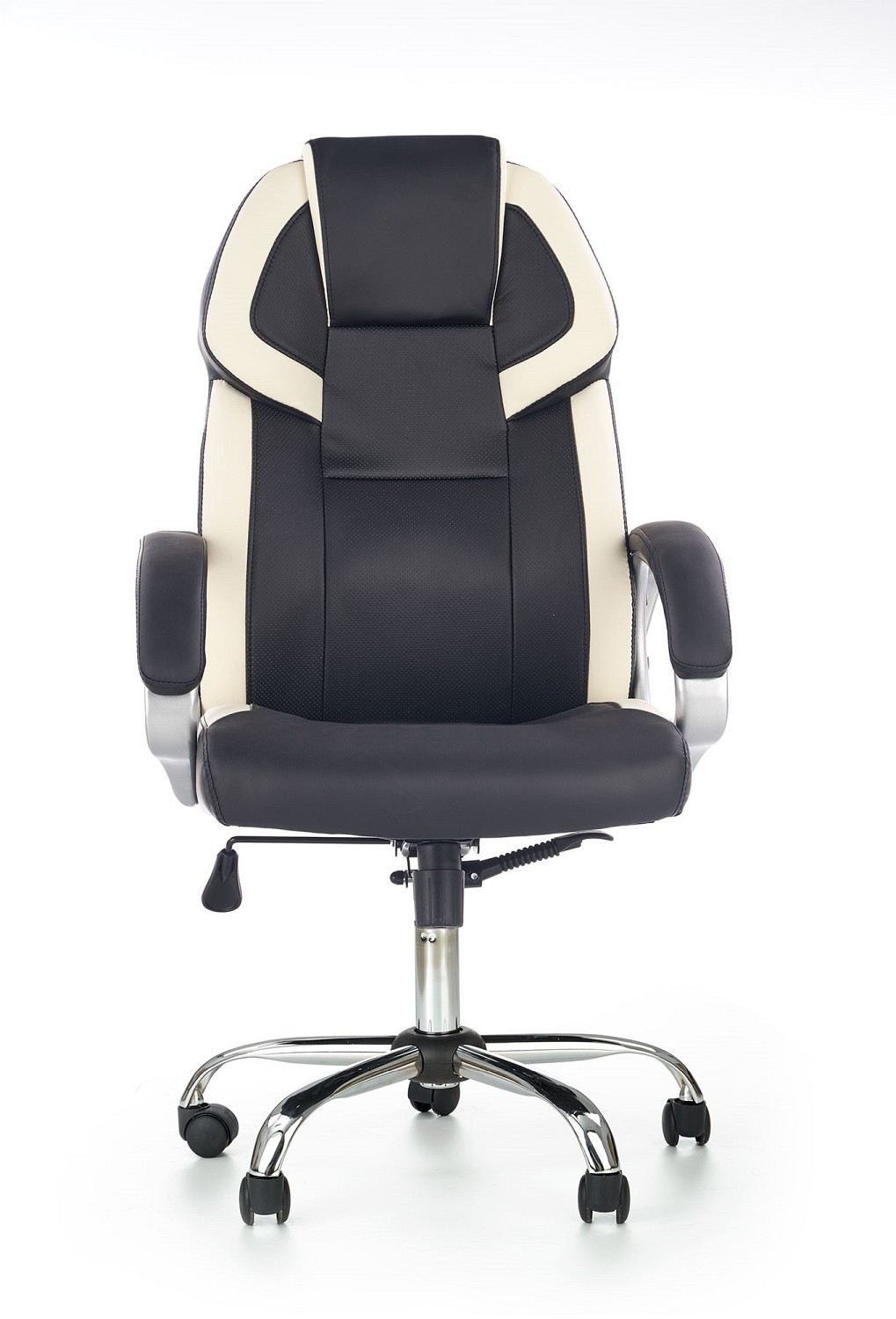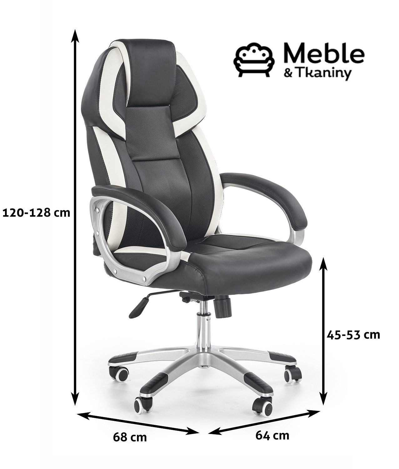 Fotel obrotowy Barton to klasyczny model z wysokim, zapewniającym komfort pracy oparciem. Doskonale sprawdza się w biurach lub w towarzystwie domowego biurka. Jego nowoczesny design osiągnięto poprzez tapicerkę z wytrzymałej ekoskóry. O ergonomię jego użytkowania dba mechanizm TILT pozwalający na wychylanie i obracanie fotela. Model dostępny w kolorze biało-czarnym.