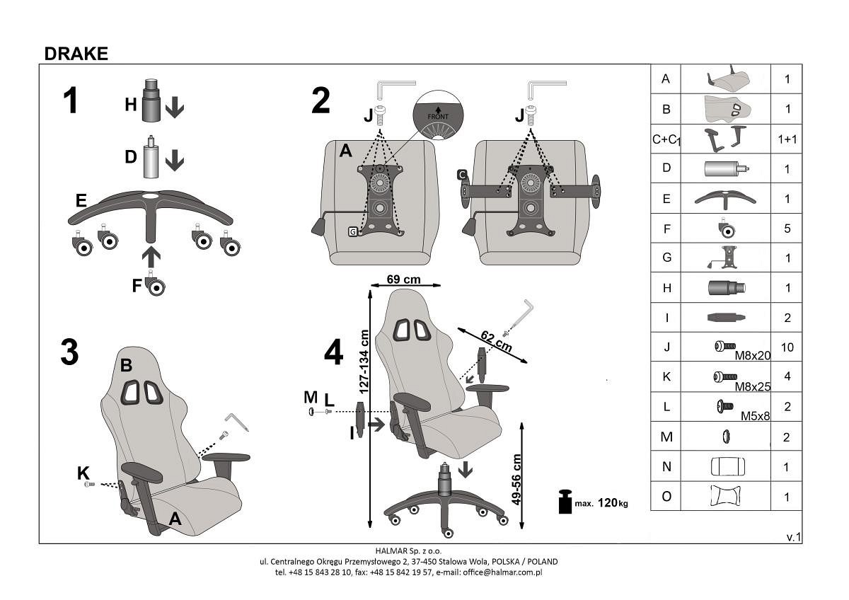 | Informacje dodatkowe | Obrotowy, Podłokietniki, Mechanizm TILT, Regulacja wysokości |