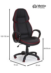 RUBIN to propozycja dla nowoczesnych ludzi ceniących sobie wygodę i elegancję. Siedzisko wraz z oparciem pokryto wytrzymałą i łatwą w czyszczeniu ekoskórą perforowaną, zaś ich obrzeża odznaczono czerwonym kolorem. Automatyczną regulację na podnośniku gazowym zapewnia innowacyjny mechanizm TILT. Dzięki, któremu możemy swobodnie regulować odpowiednią postawę kręgosłupa dopasowaną do wzrostu i preferencji użytkownika oraz „zapisać” ją dzięki wbudowanej blokadzie pozycji. Do podstawy zamocowany został zestaw kółek powlekanych kauczukiem przeznaczonych do powierzchni twardych.