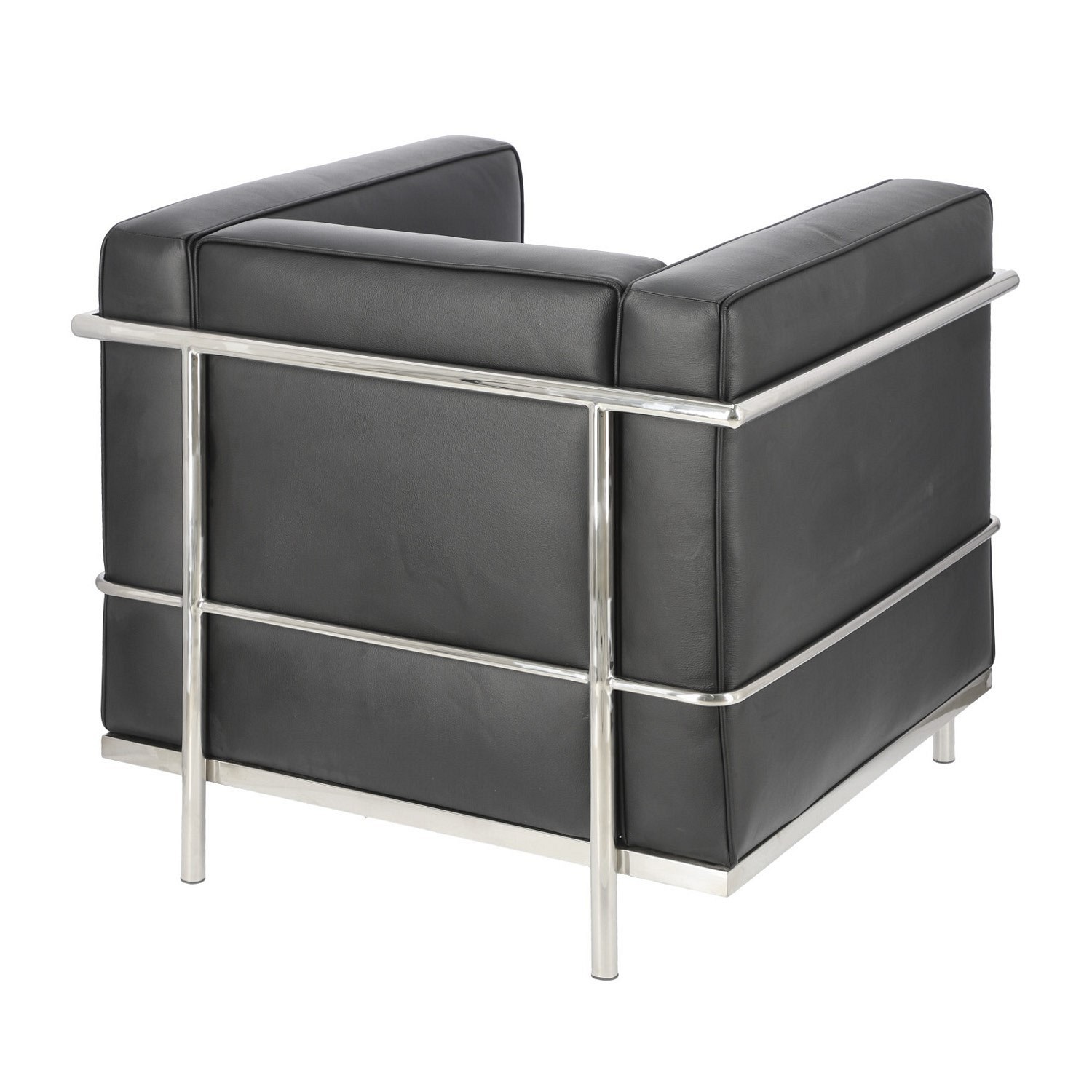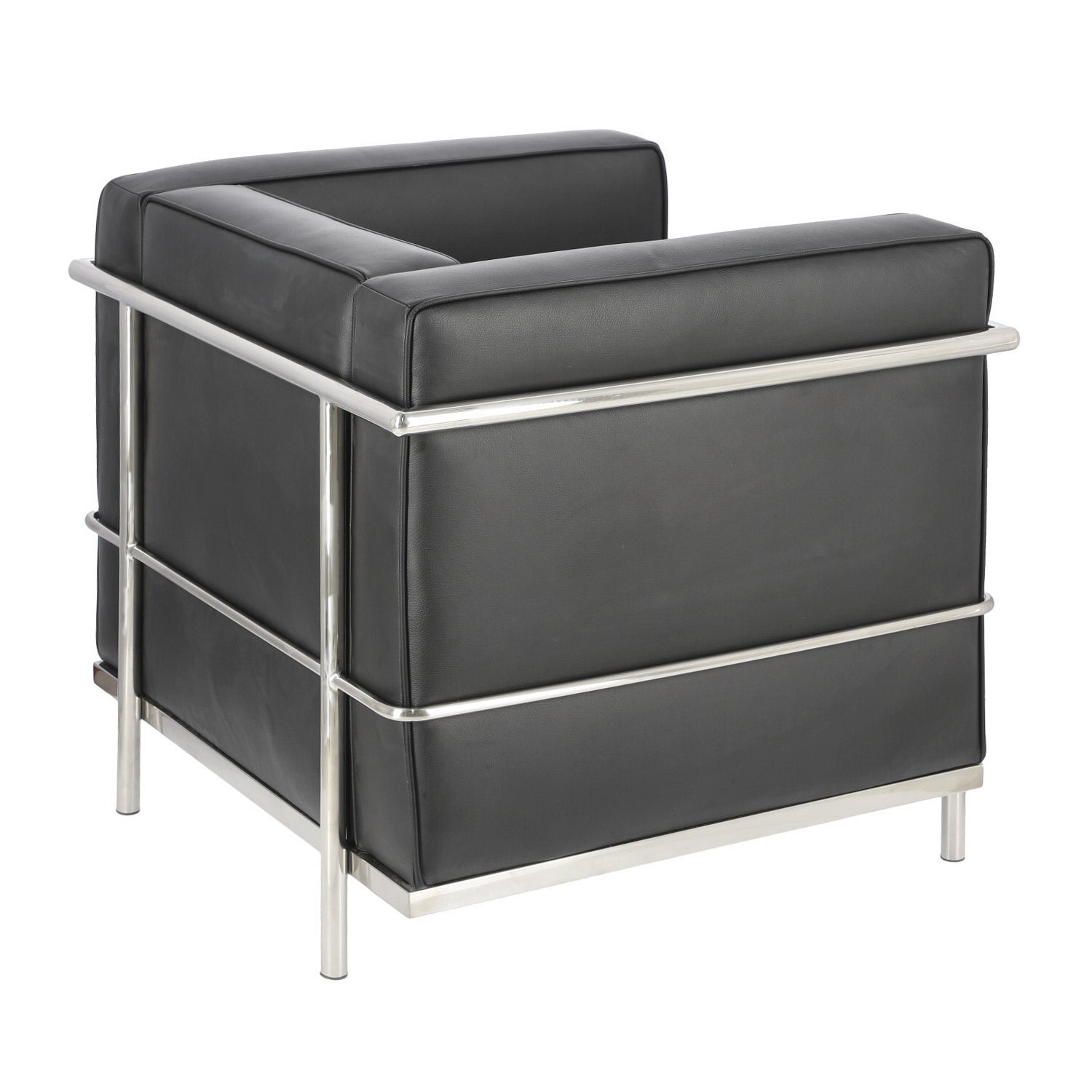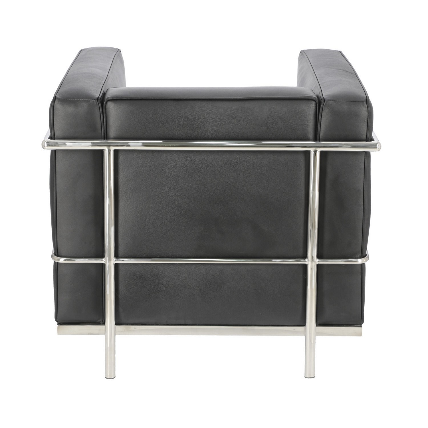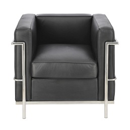 Kubik to najbardziej znany fotel zaprojektowany przez Le Corbusier w,1928 roku. Konstrukcja fotela jest chromowana a siedzisko zostało tapicerowane skórą naturalną.. Kolekcje uzupełniają sofa dwuosobowa oraz stoliki kawowe.,Prezentowany produkt jest inspirowany projektem fotela LC2